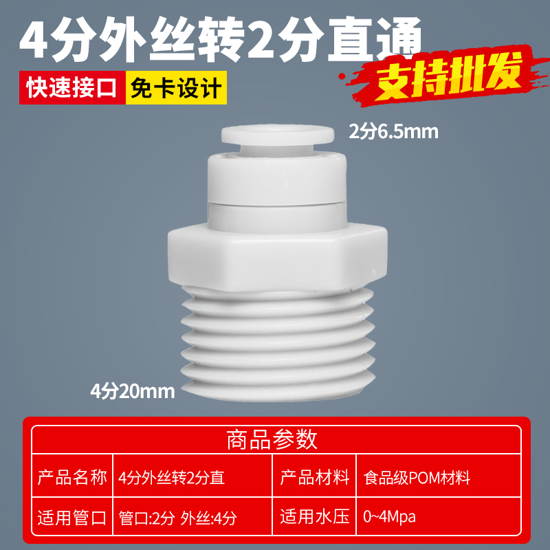 4分外牙转2分直通净水器纯水接头PE软管快插头直饮水机过滤器配件,广东 佛山
