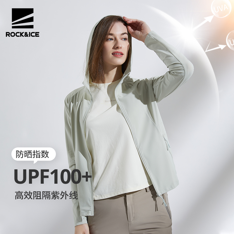 ROCKICE防晒衣女短款户外防紫外线透气运动皮肤衣空调防晒服外套
