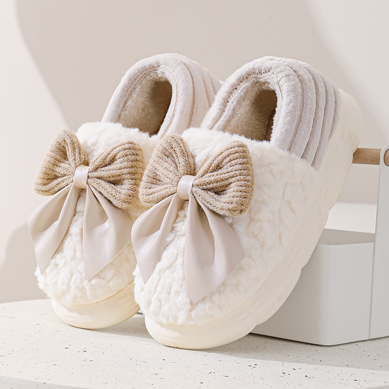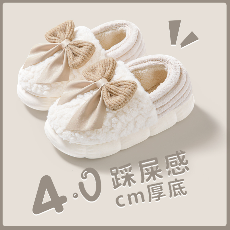 蝴蝶结毛绒棉拖鞋女士冬季2025新款居家室内保暖包跟厚底棉鞋冬天,浙江 金华