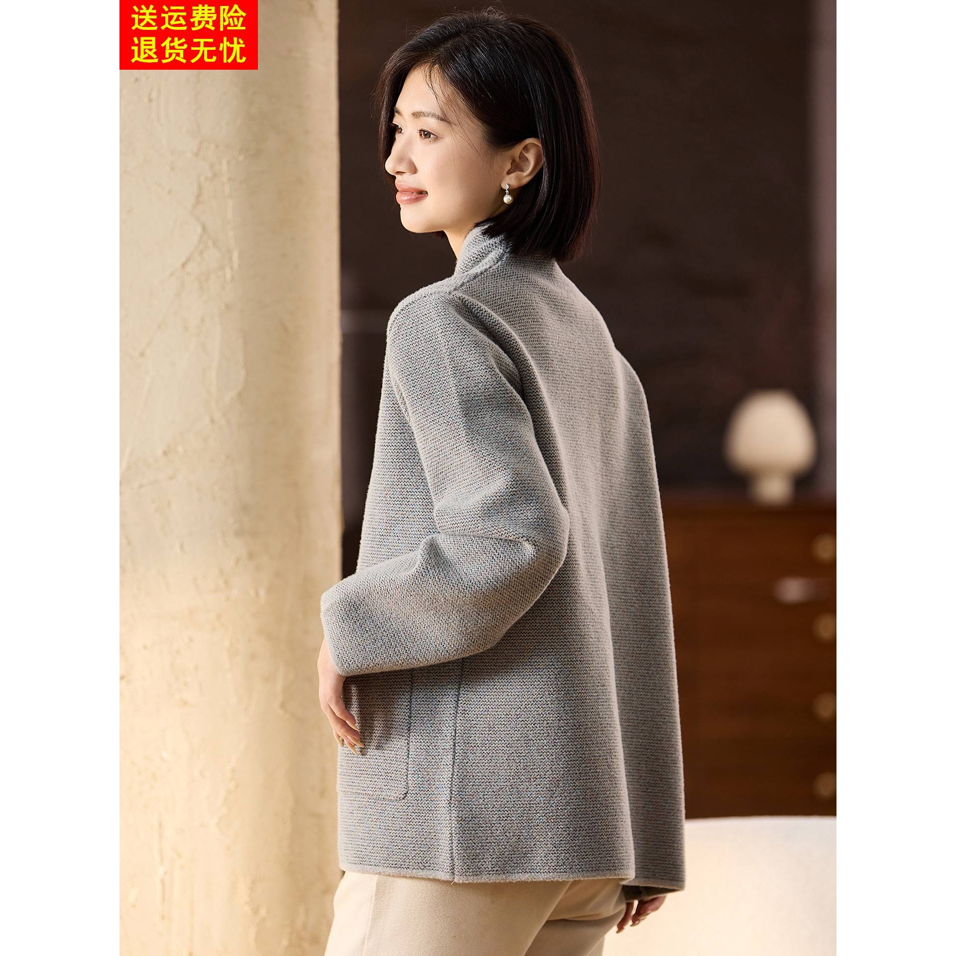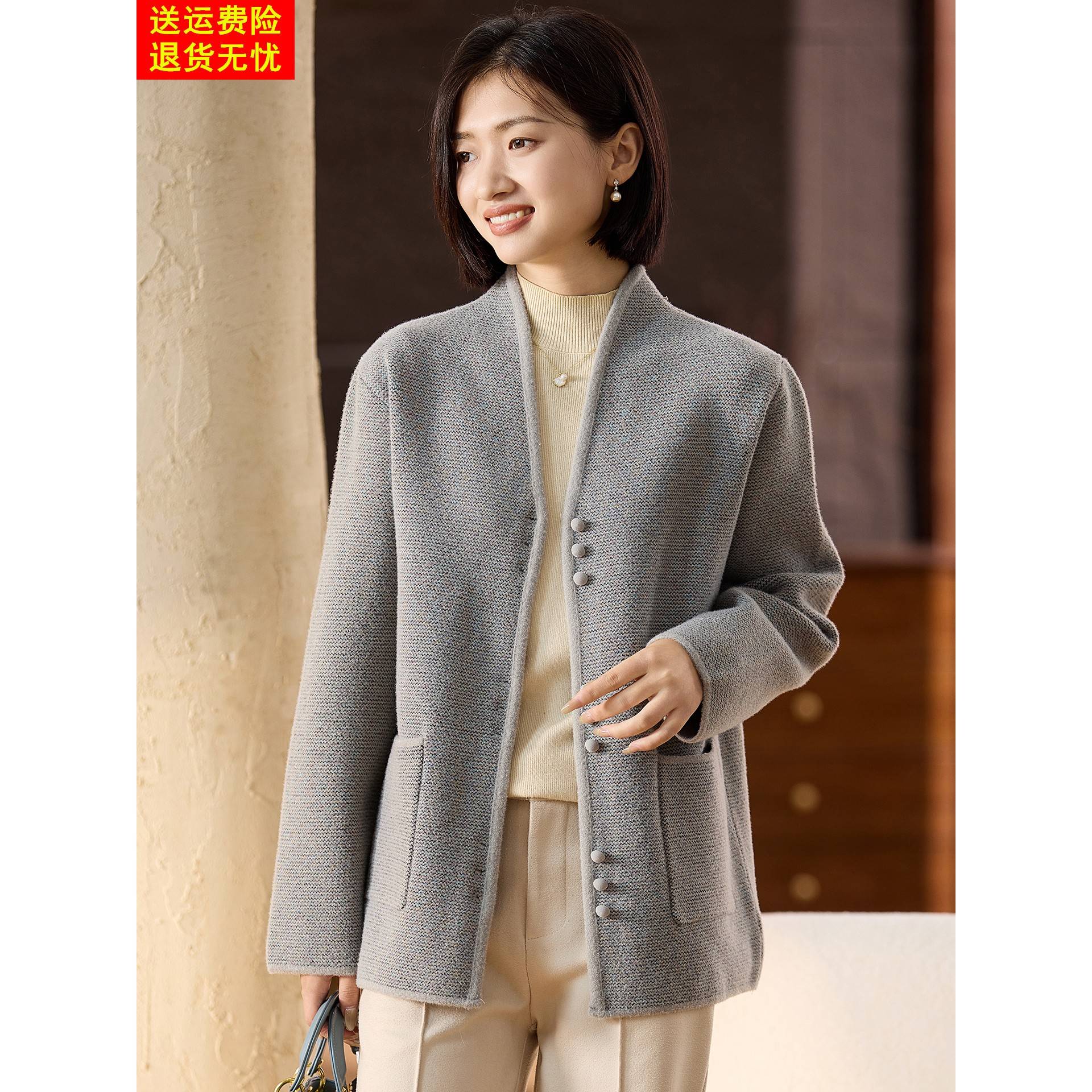 喜卉时尚休闲妈妈秋装针织开衫秋冬上衣服洋气中老年女装毛呢外套,浙江 嘉兴