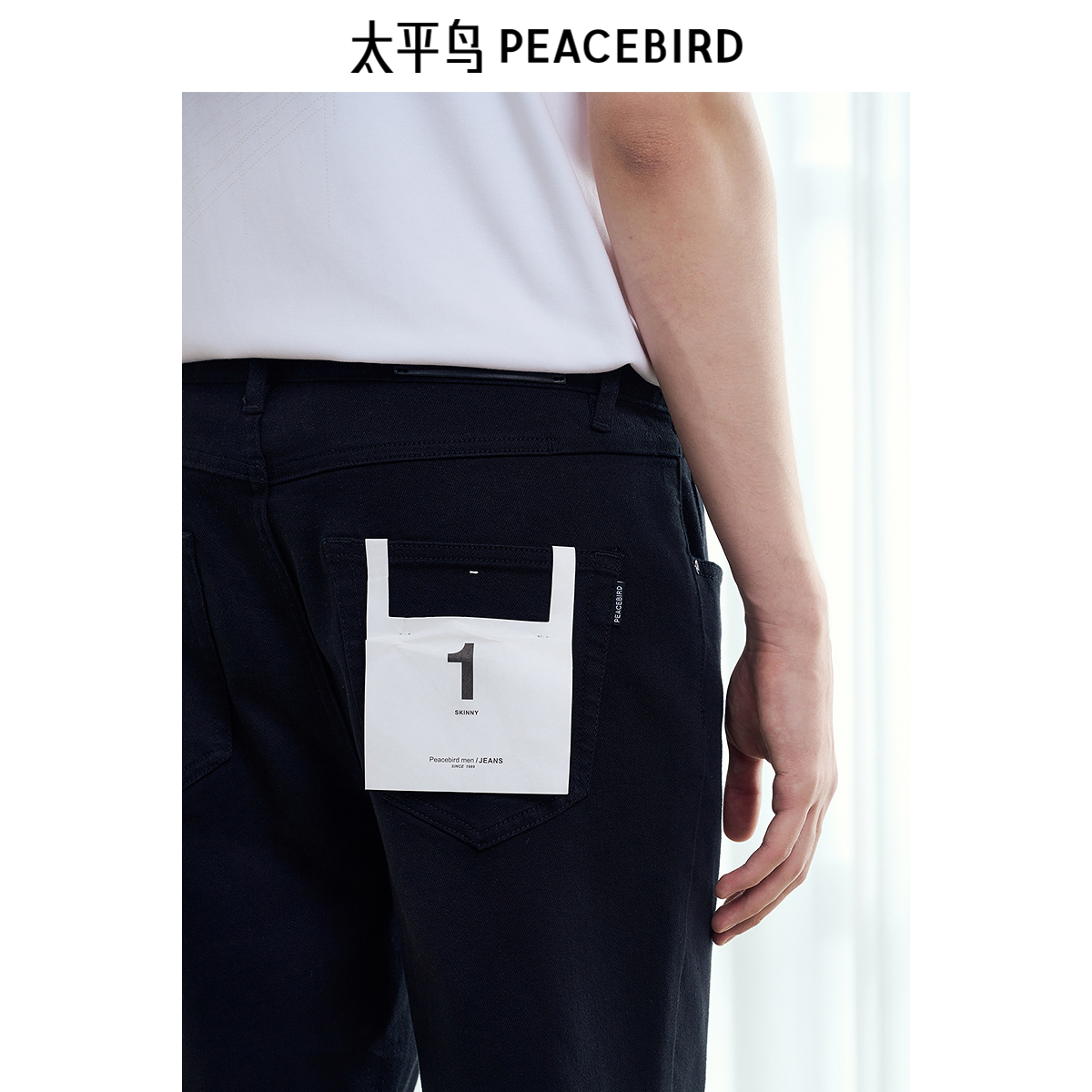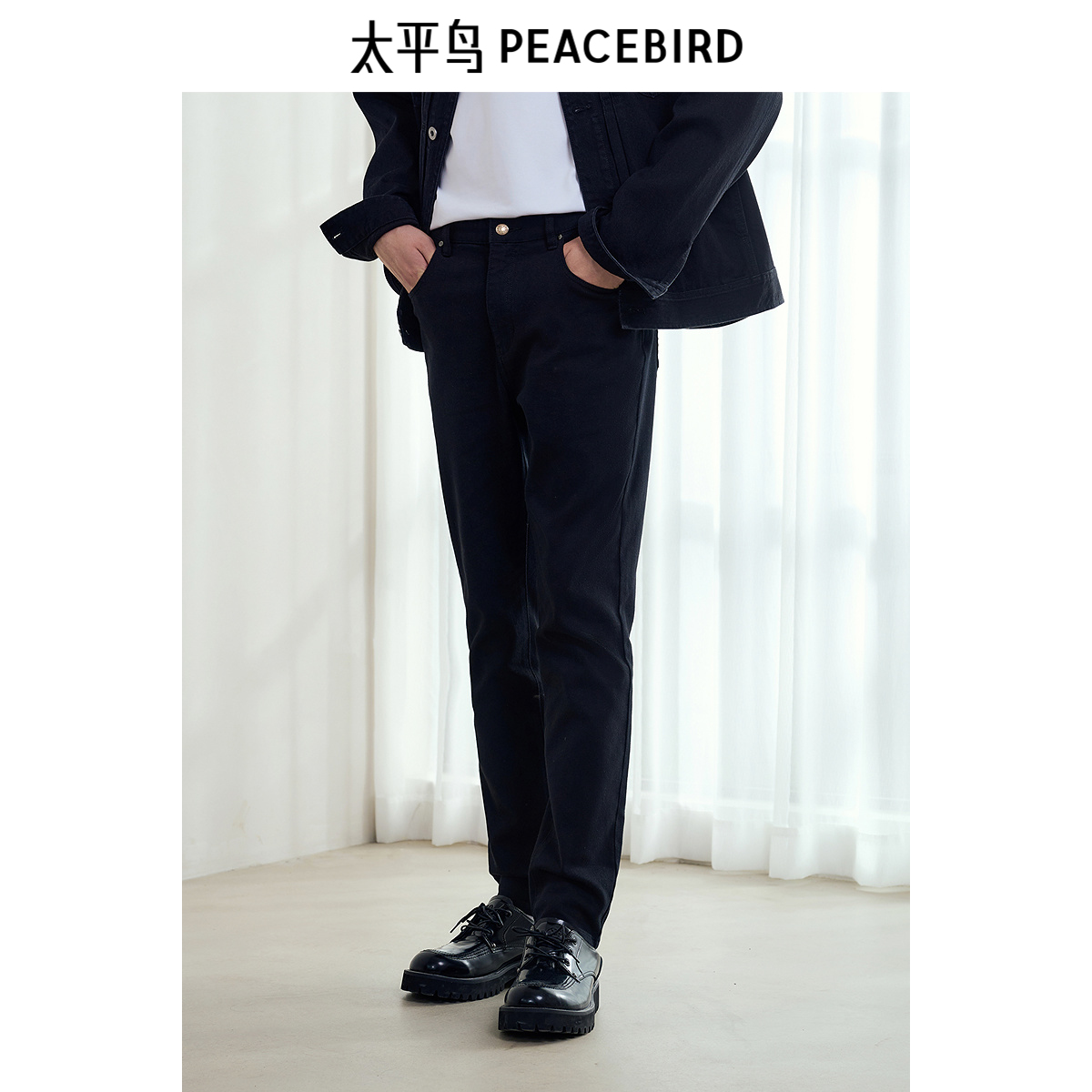 太平鸟男装 休闲牛仔裤潮流时尚挺括舒适黑色紧身牛仔裤男士长裤,浙江 宁波