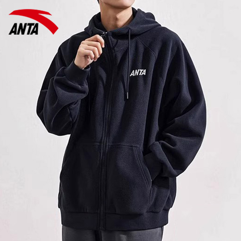 安踏外套男装连帽春秋开衫卫衣官方旗舰店正品男款夹克运动服上衣