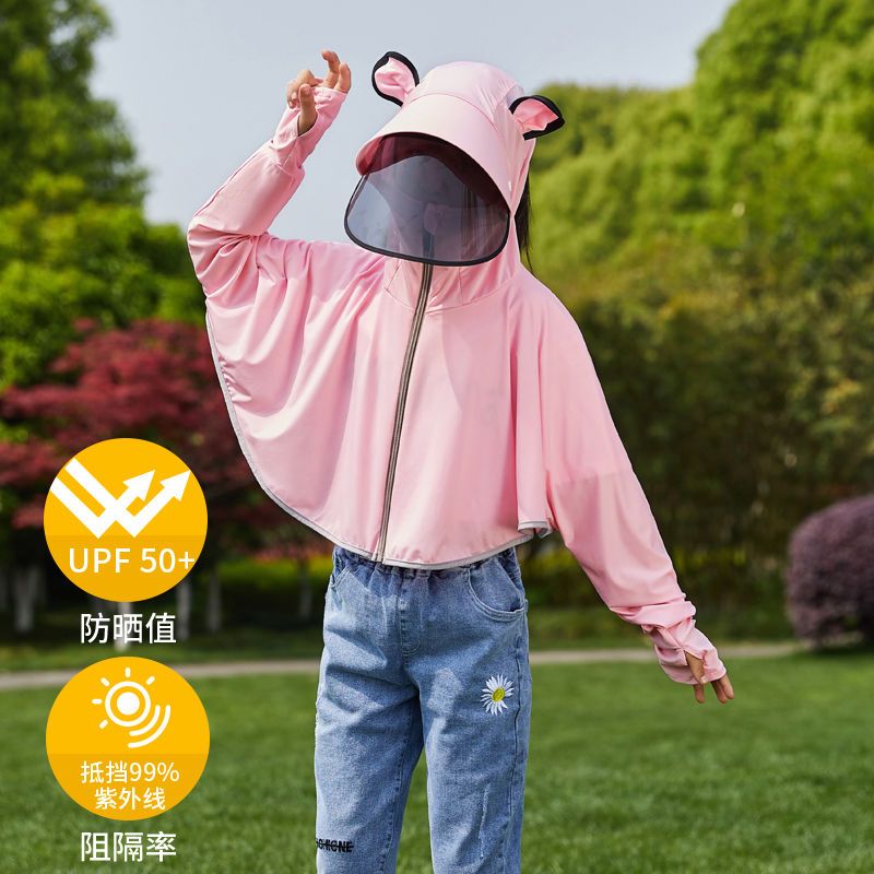 巴拉妮琪儿童防晒衣夏季薄款皮肤衣斗篷海边防紫外线女童防晒服潮