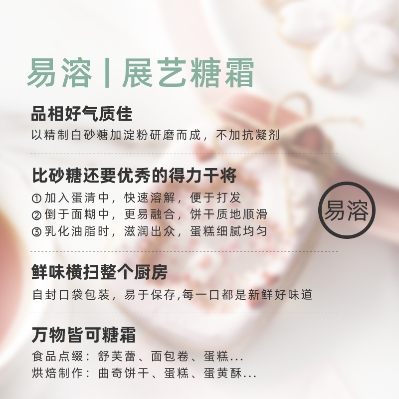 展艺糖霜500g糖粉细砂糖粉蛋糕饼干家用烘焙原材料雪花酥装饰专用,浙江 嘉兴