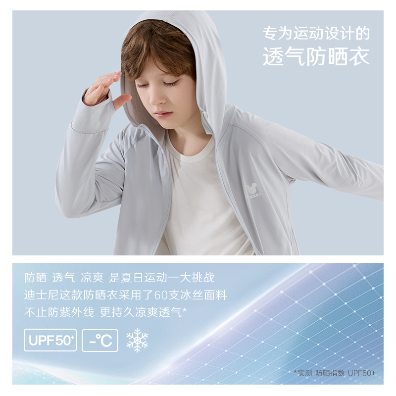 迪士尼男童防晒衣夏季新款儿童防紫外线皮肤衣户外大童冰丝薄外套,江苏 无锡