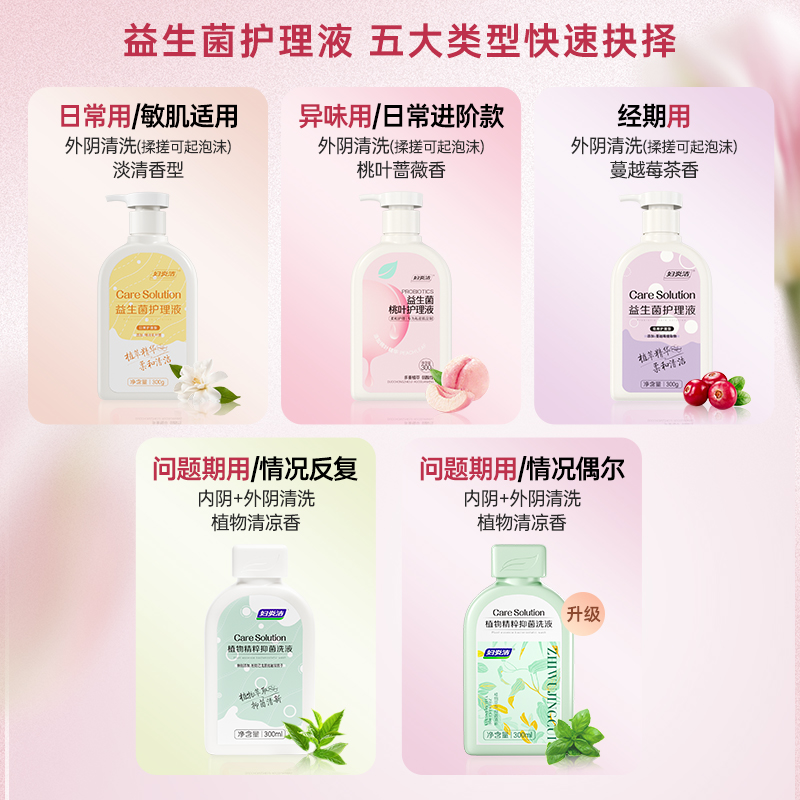 妇炎洁私处洗液益生菌抑菌祛味300g*2止痒抑菌洗液日常女官方正品