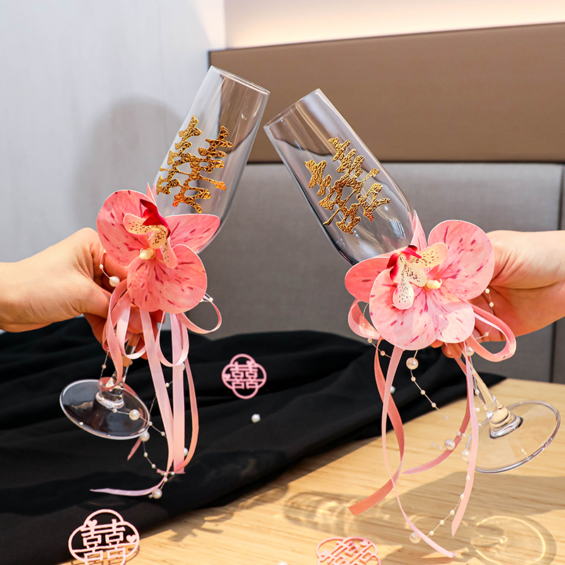 结婚敬酒杯新人香槟杯高脚杯喜字婚礼创意diy材料包鸡尾酒杯一对