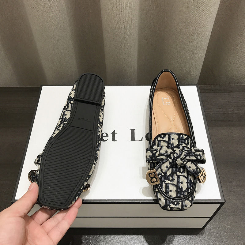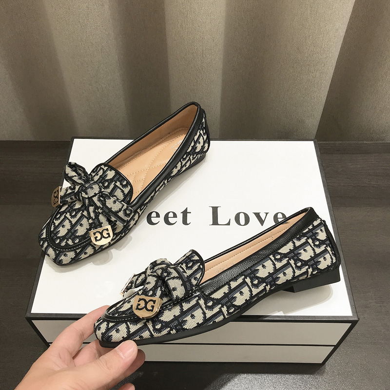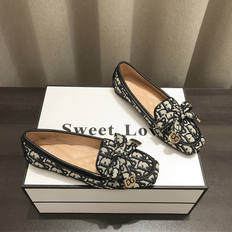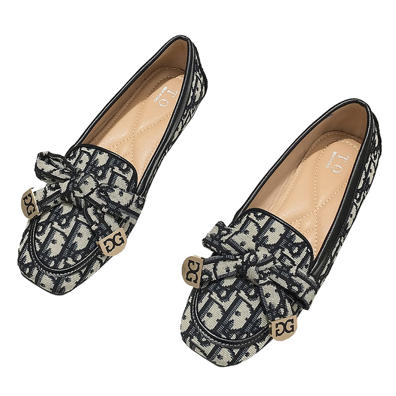 小香风一脚蹬豆豆鞋女2025春秋新款舒适布面软底方头平底单鞋大码,上海