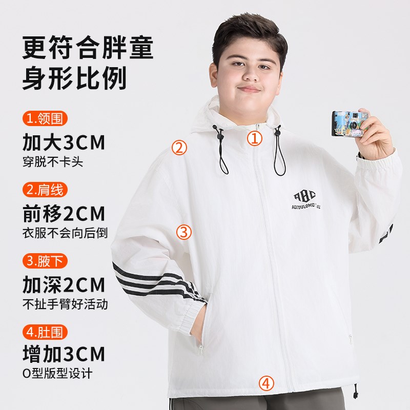 胖童装男童防晒衣外套加肥加大薄款2025新款夏装皮肤衣防晒服夏天,浙江 湖州