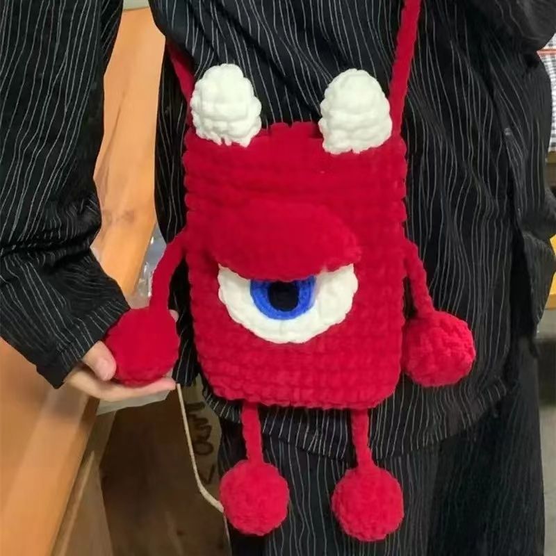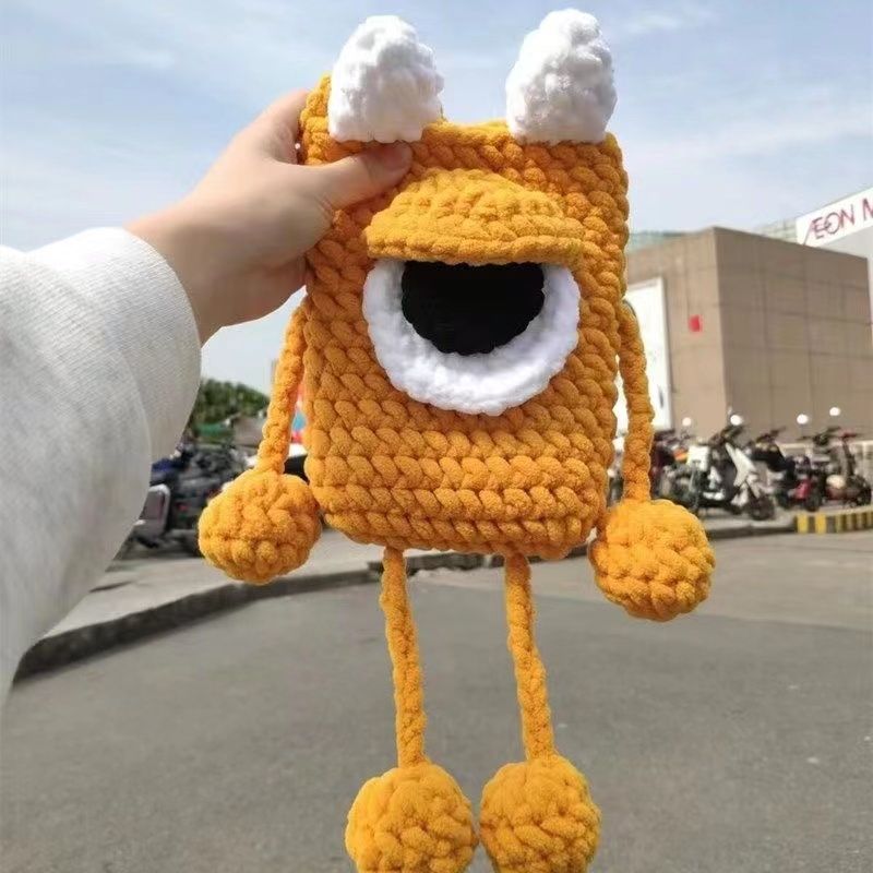 丑萌大眼怪兽手机包手工编织diy材料包冰条线钩针粗毛线自制礼物