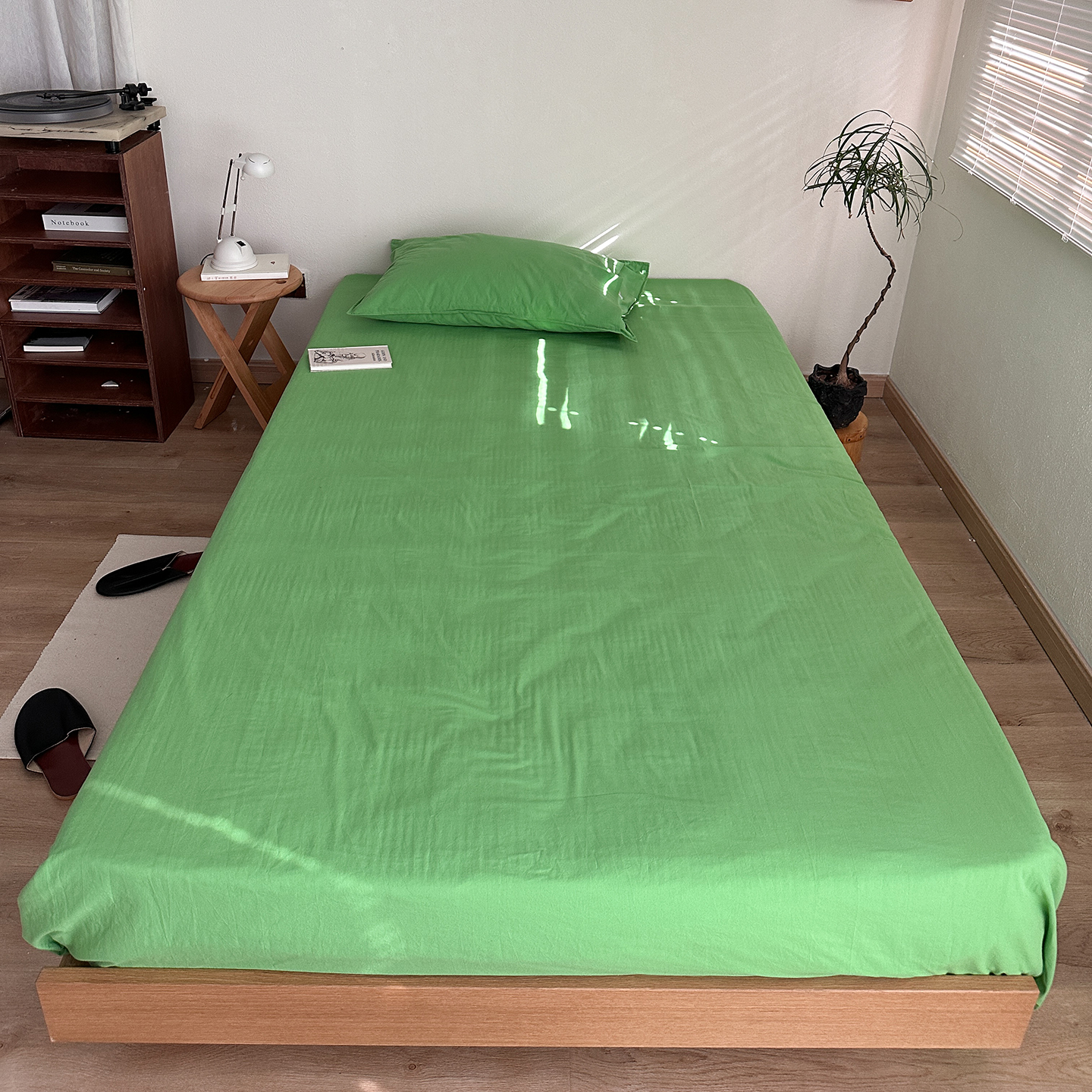 【床笠床单】纯色全棉色织水洗棉 柔软透气条双人学生宿舍单人