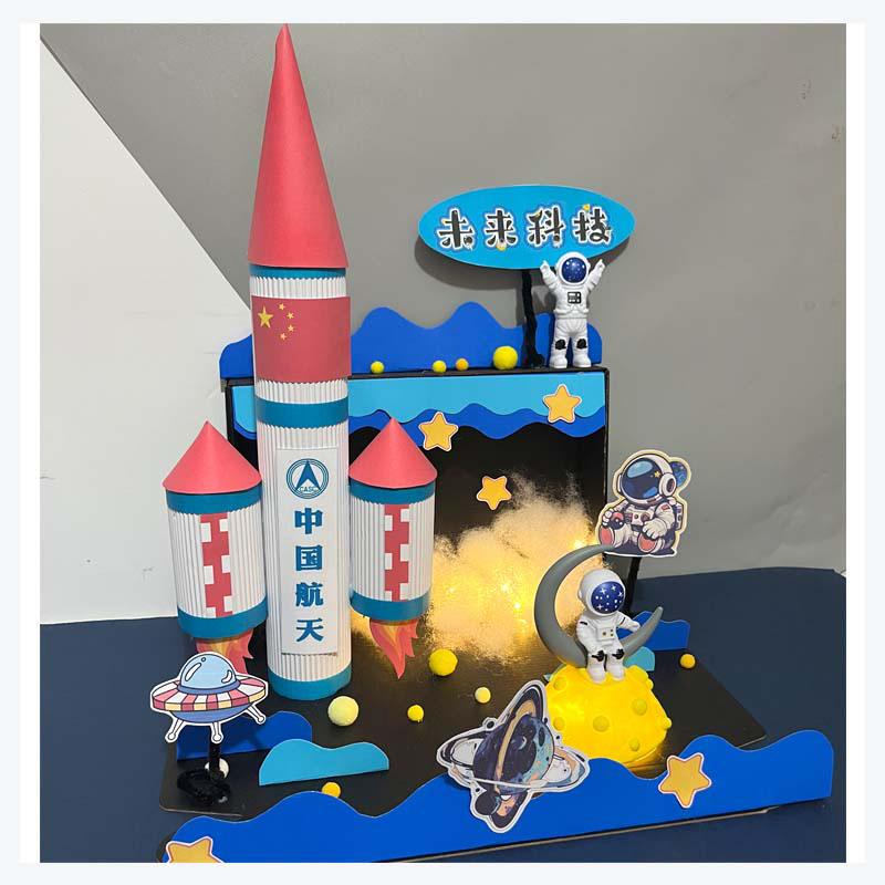火箭手工diy立体中国航天造型手工材料航天模型科技作业国庆手工