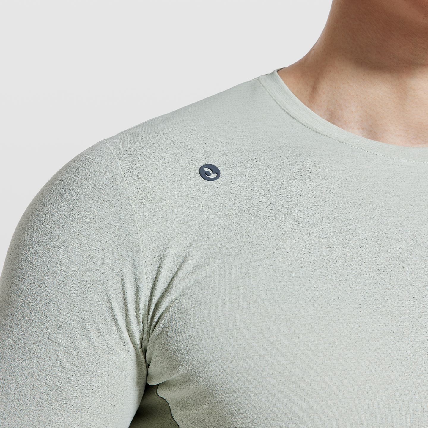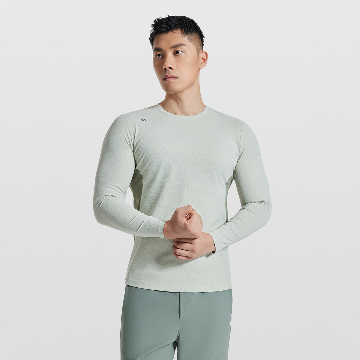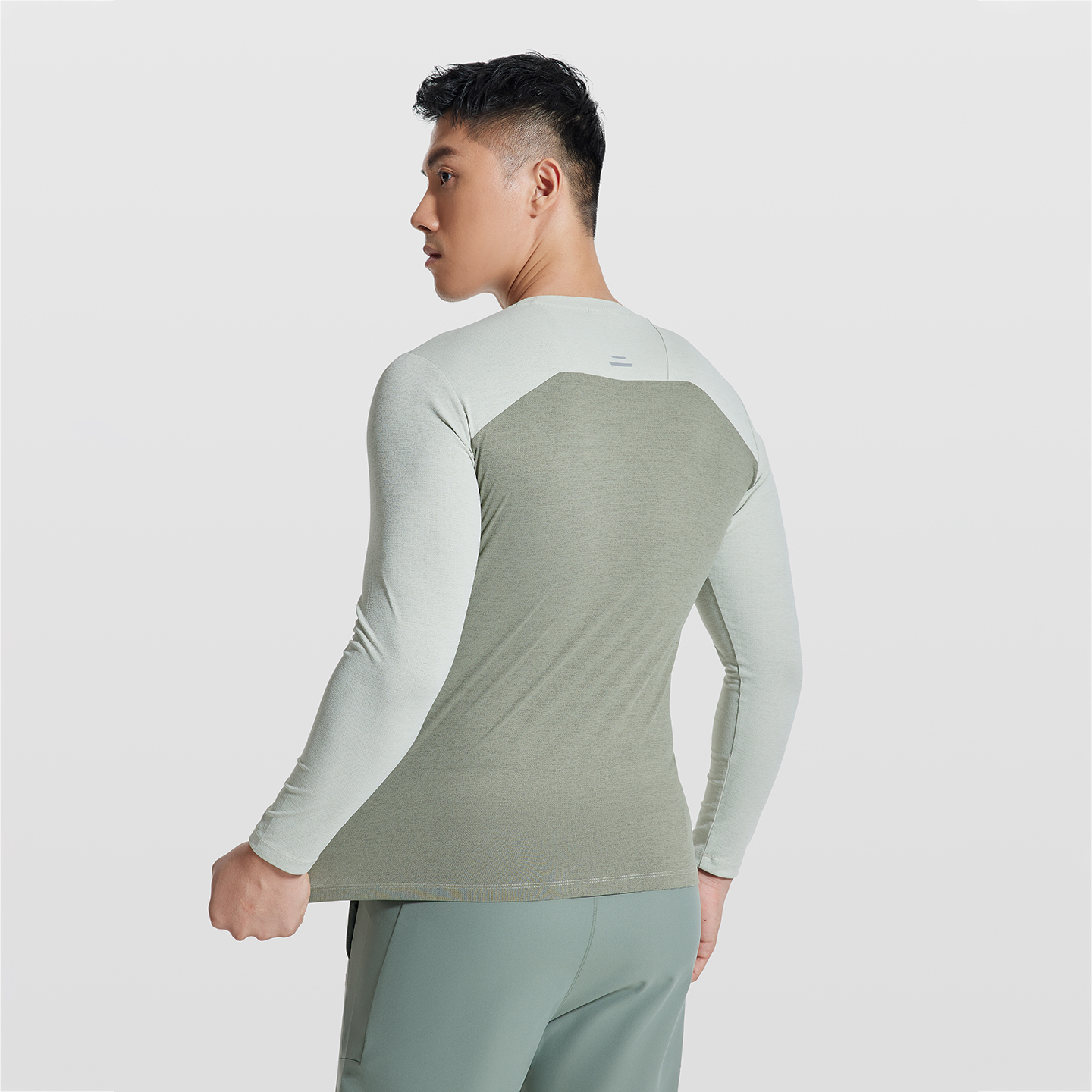 SOSOLEMON 棉感速干长袖3D剪裁修身男装圆领健身运动吸湿排汗撞色