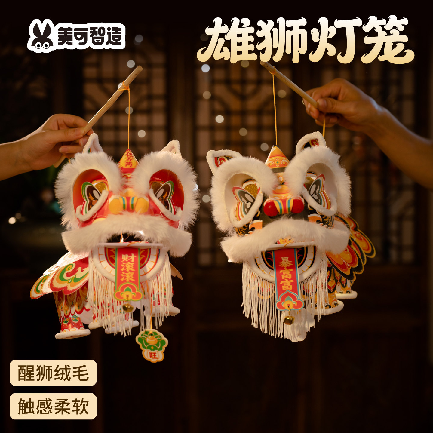 新年春节元旦马年雄狮灯笼手工diy古风狮子花灯儿童制作材料装饰