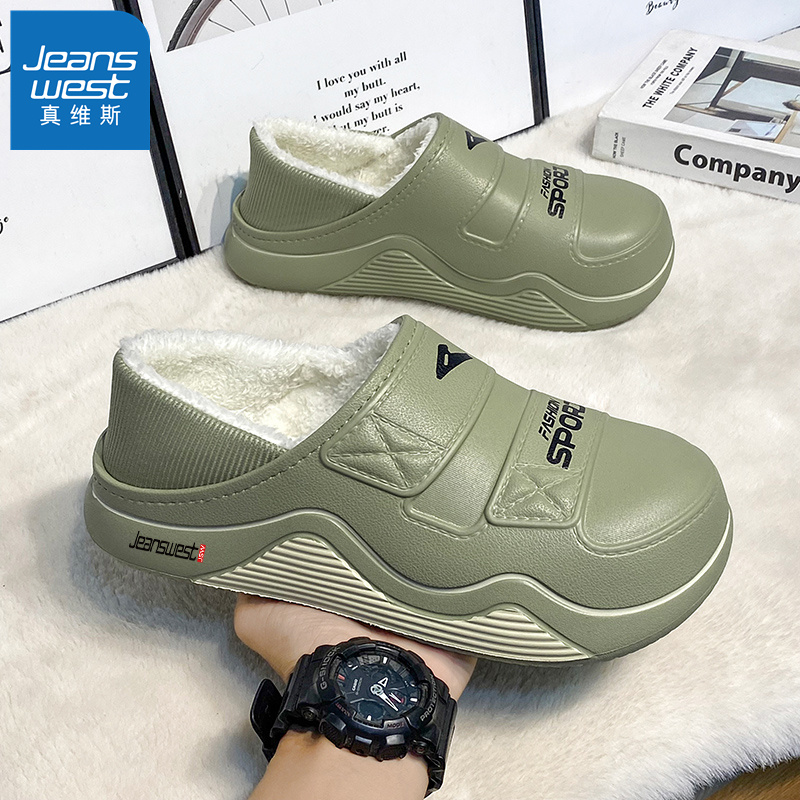 HH真维斯棉拖鞋2025新款冬季加绒保暖居家棉鞋情侣两用包头拖鞋男,福建 泉州