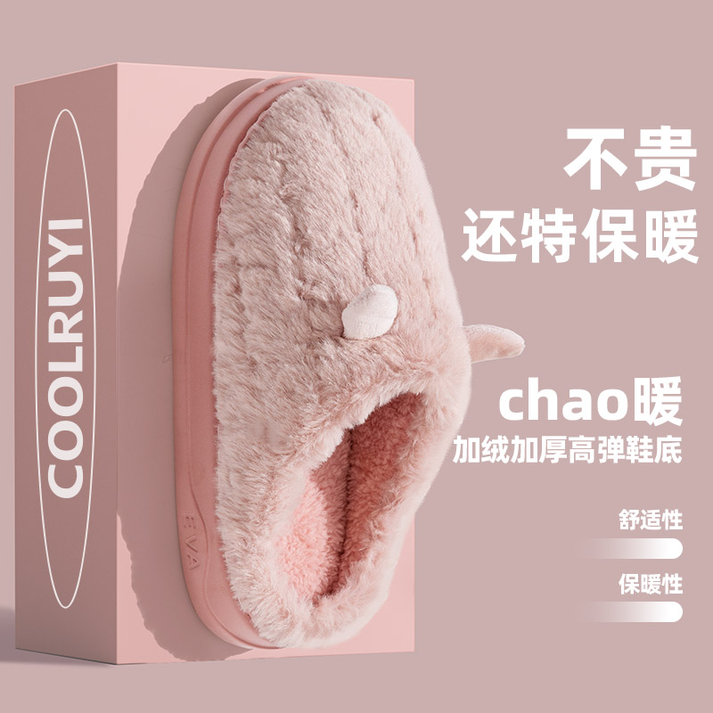 可爱棉拖鞋女冬季2025新款室内居家防滑厚底保暖情侣棉鞋冬男外穿,浙江 金华