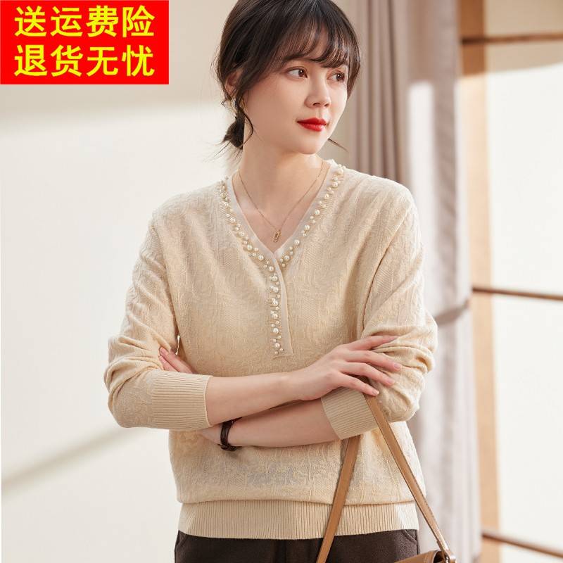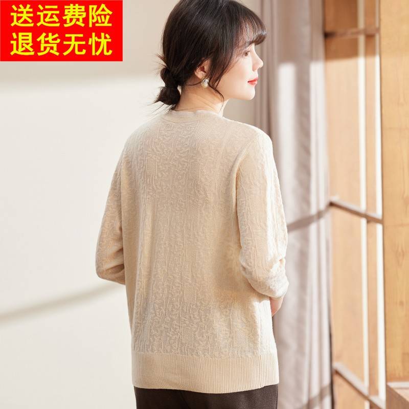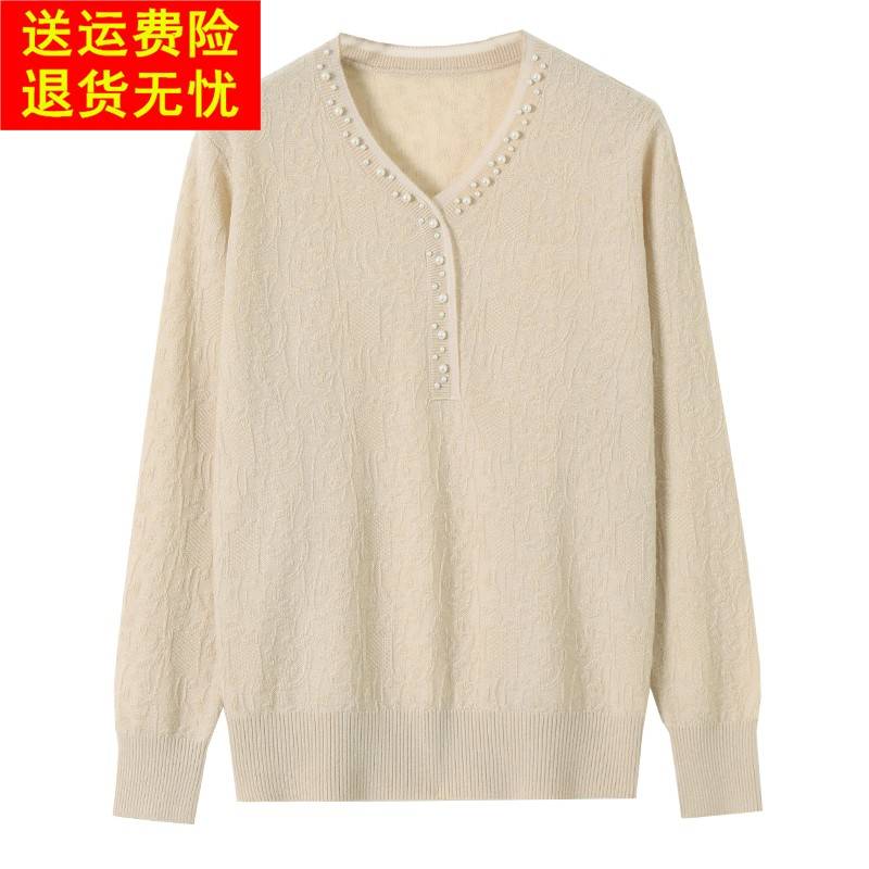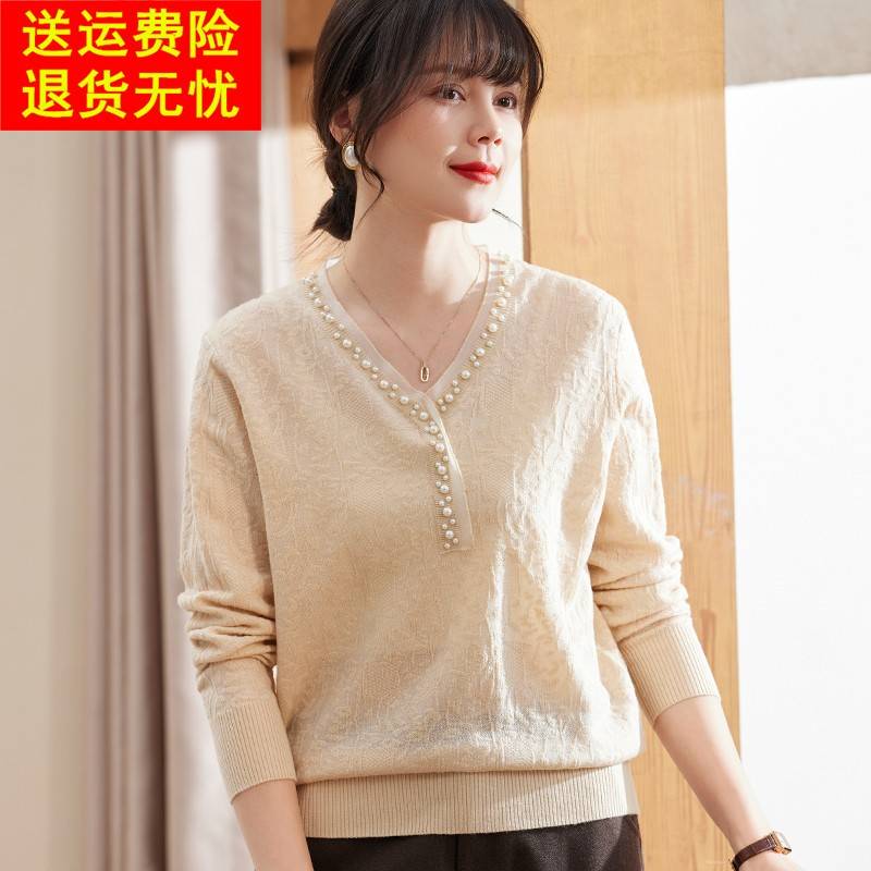 喜卉妈妈春季新款V领气质针织衫中老年女装洋气宽松打底保暖上衣,浙江 嘉兴