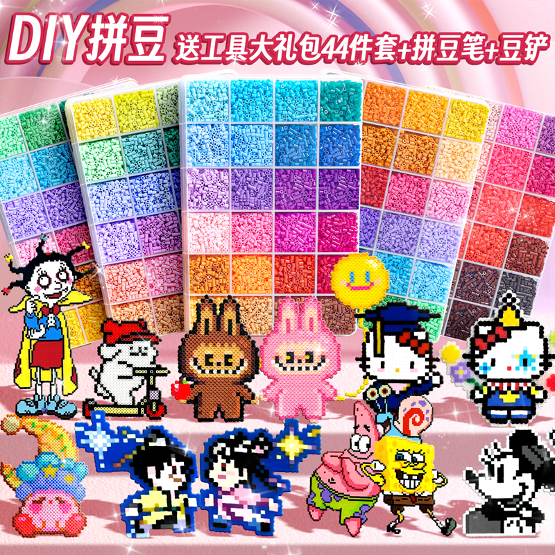 拼豆豆手工diy材料包全套拼豆套装工具女孩玩具立体融合coco补充