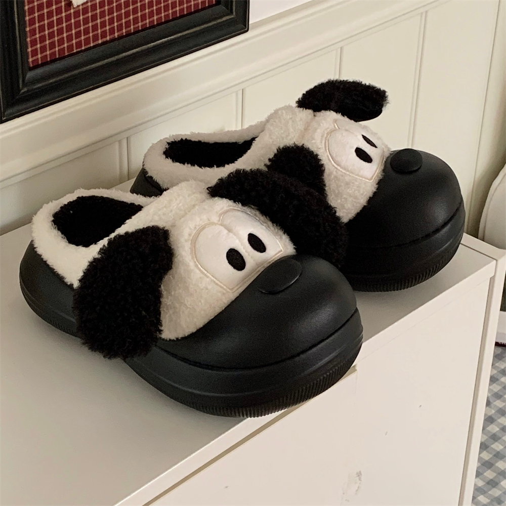 细细条 冬天外穿保暖厚底毛毛棉鞋女新款软萌小狗防滑居家棉拖鞋