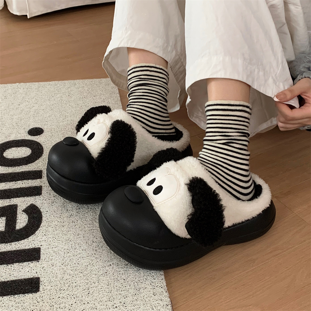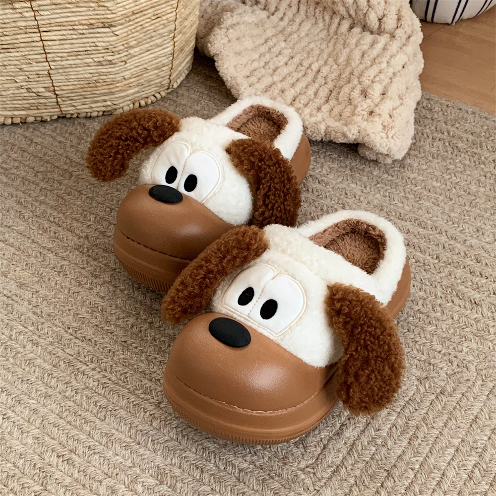 细细条 冬天外穿保暖厚底毛毛棉鞋女新款软萌小狗防滑居家棉拖鞋,广东 揭阳