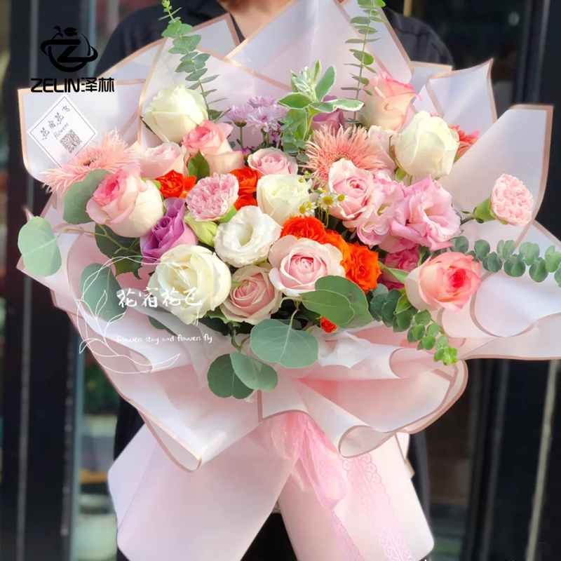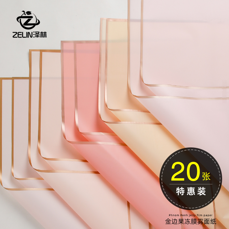 半透明防水金边果冻膜雾面纸花艺包装材料鲜花束包装纸花店包花纸,浙江 金华
