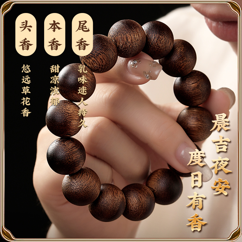 真天然越南芽庄奇楠沉香手串男盘玩念珠108颗佛珠檀木文玩手链女