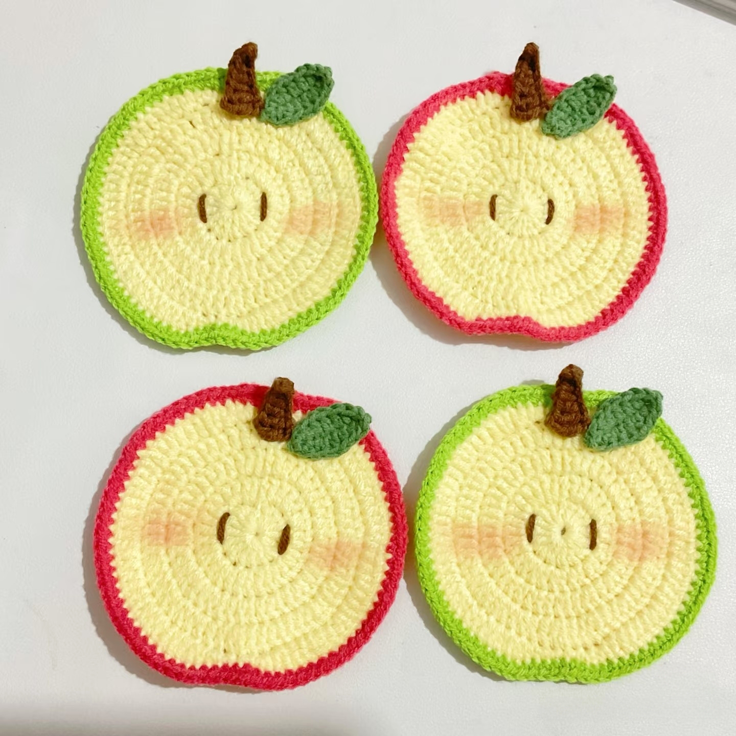 DIY手工钩织圣诞苹果杯垫毛线编织材料包钩针圣诞节礼物茶杯垫子,安徽 亳州