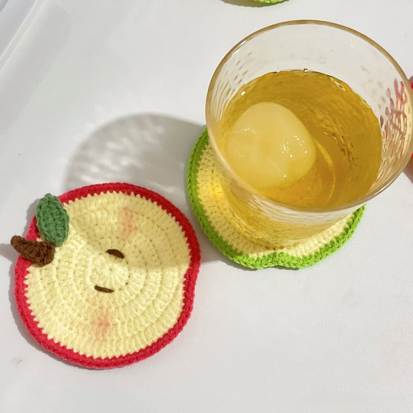 DIY手工钩织圣诞苹果杯垫毛线编织材料包钩针圣诞节礼物茶杯垫子
