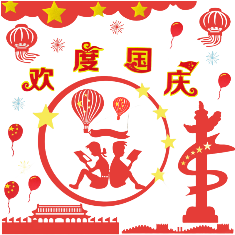 华表柱环创国庆节黑板报装饰贴中小学教室爱国主题材料无纺布毛毡,江西 赣州