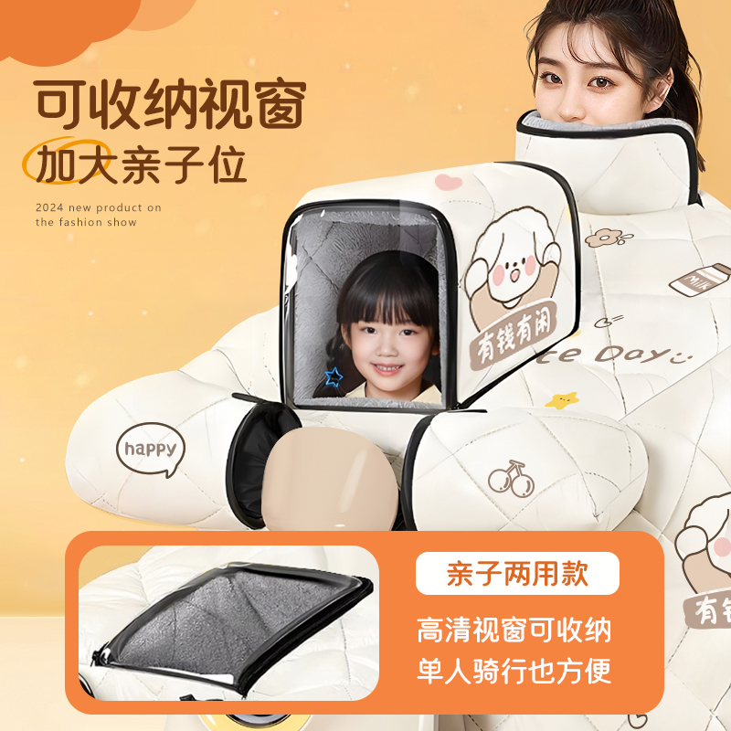 加厚防水电动车挡风被冬季加绒儿童亲子款冬款防雨风罩后座三轮车,浙江 杭州
