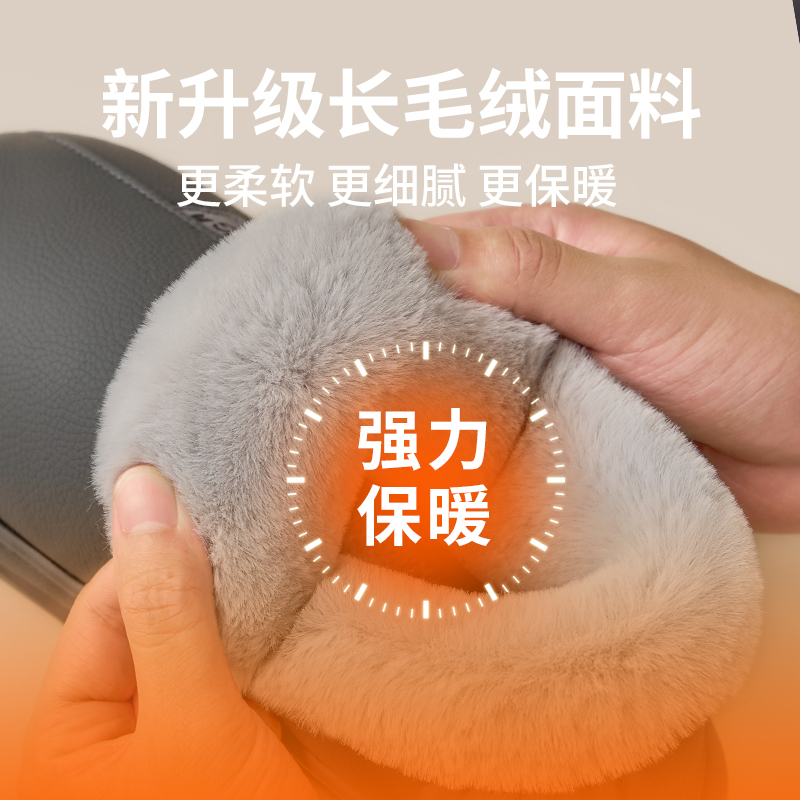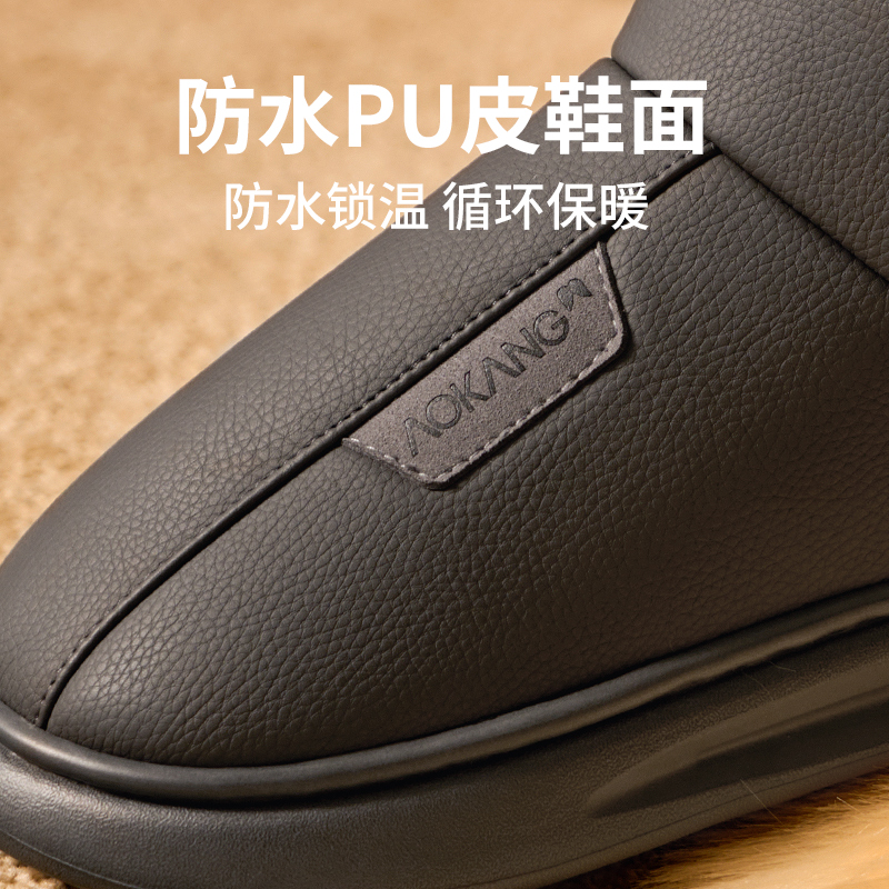 奥康防水棉拖鞋男款冬季包跟加绒保暖高帮居家用室内防滑棉鞋女冬,浙江 台州