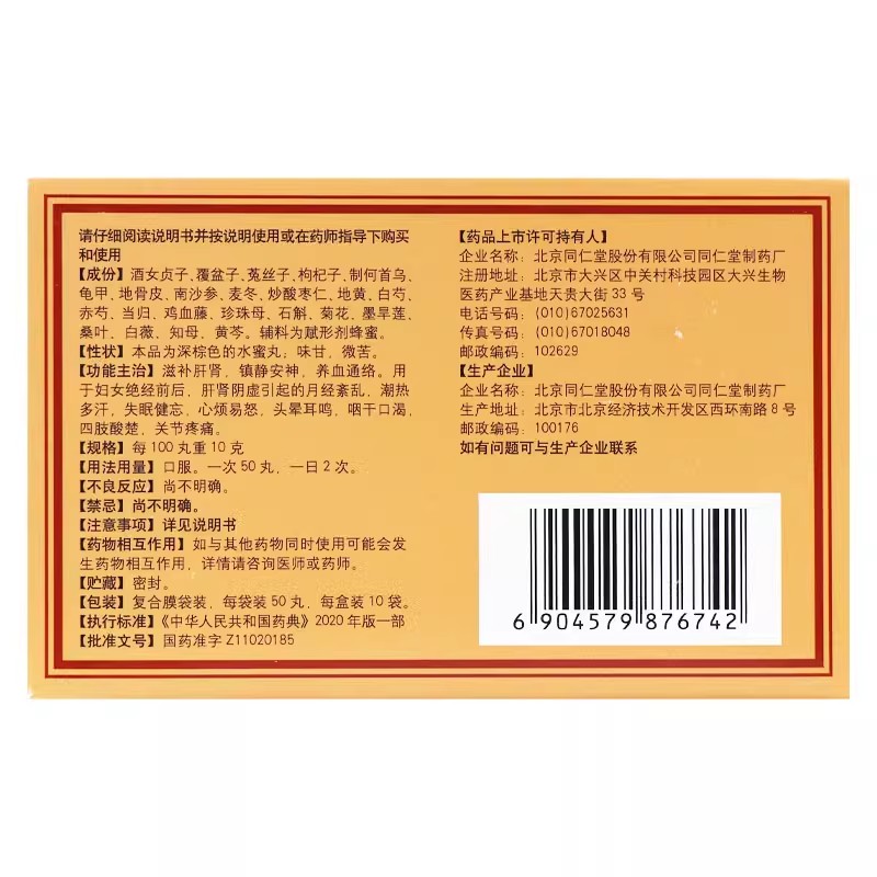 低至20.6元/盒】包邮】同仁堂 坤宝丸 50粒*10袋/盒