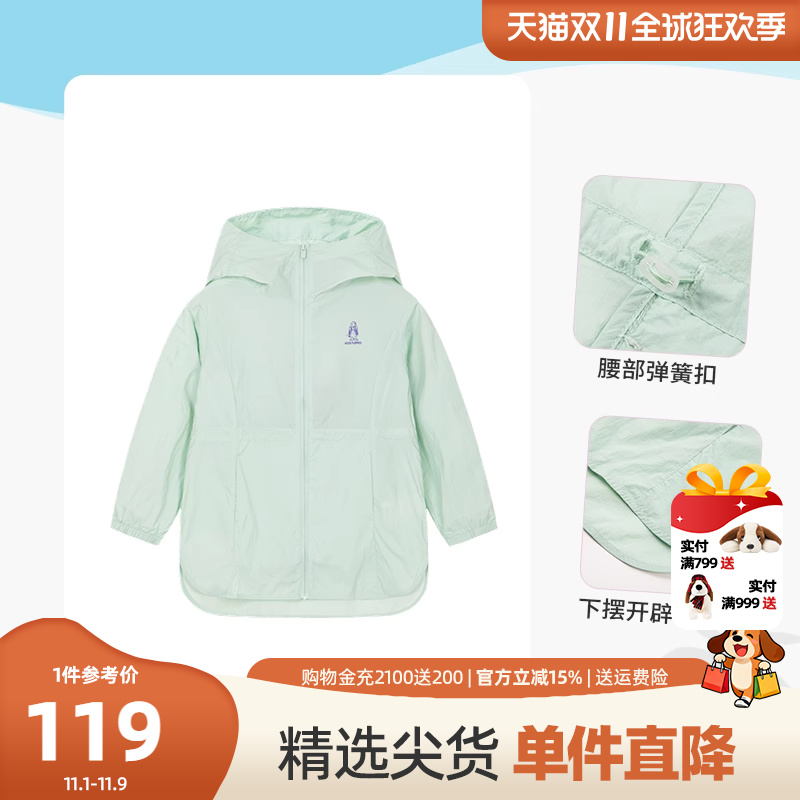 暇步士童装女童防晒衣夏季新款宽松轻薄连帽皮肤衣儿童外套潮
