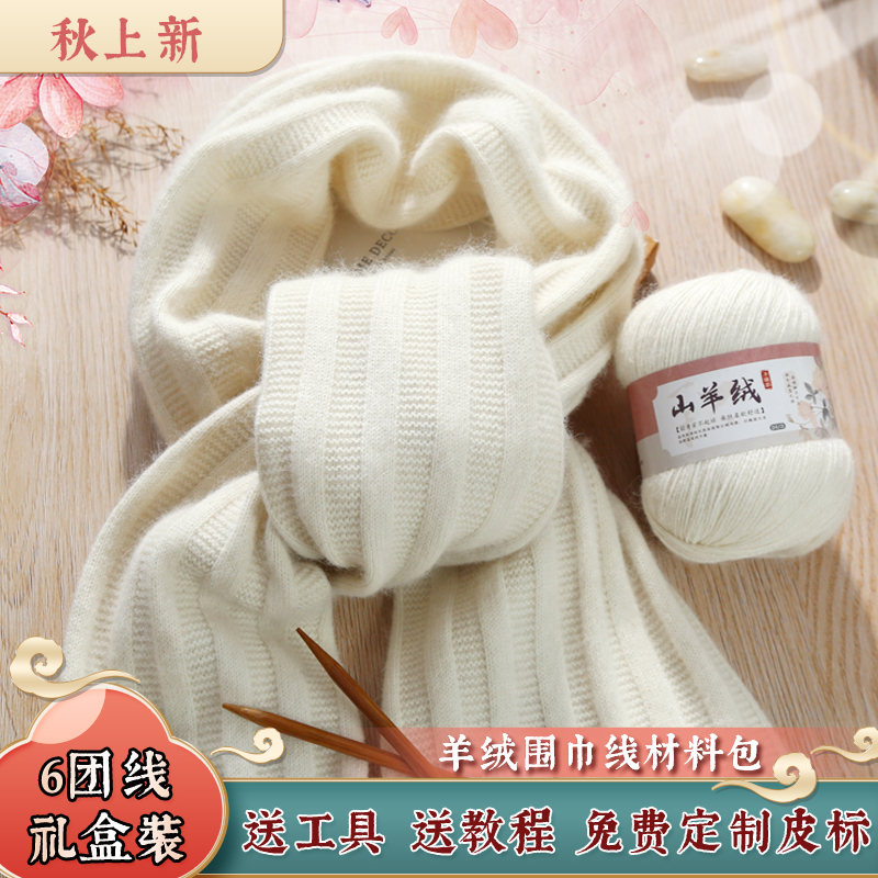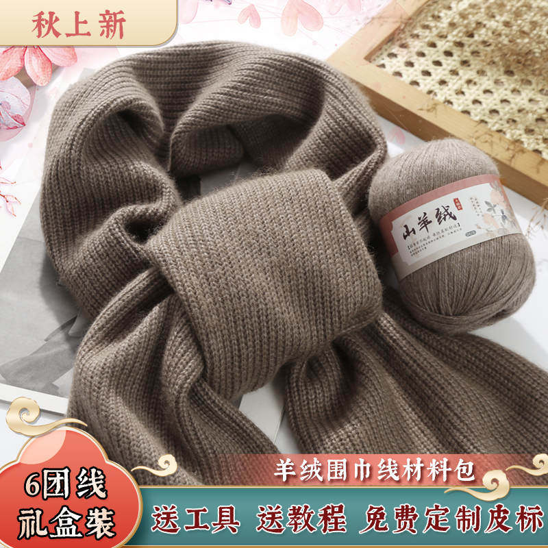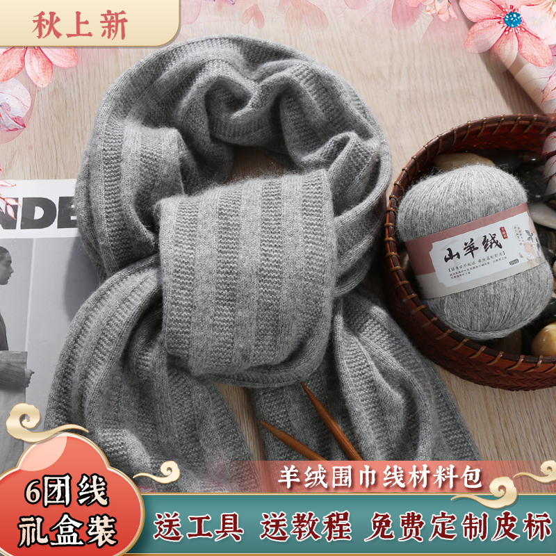 羊绒围巾礼盒材料包手工DIY纯山羊绒中粗毛线团自织围脖送男女友,河北 保定