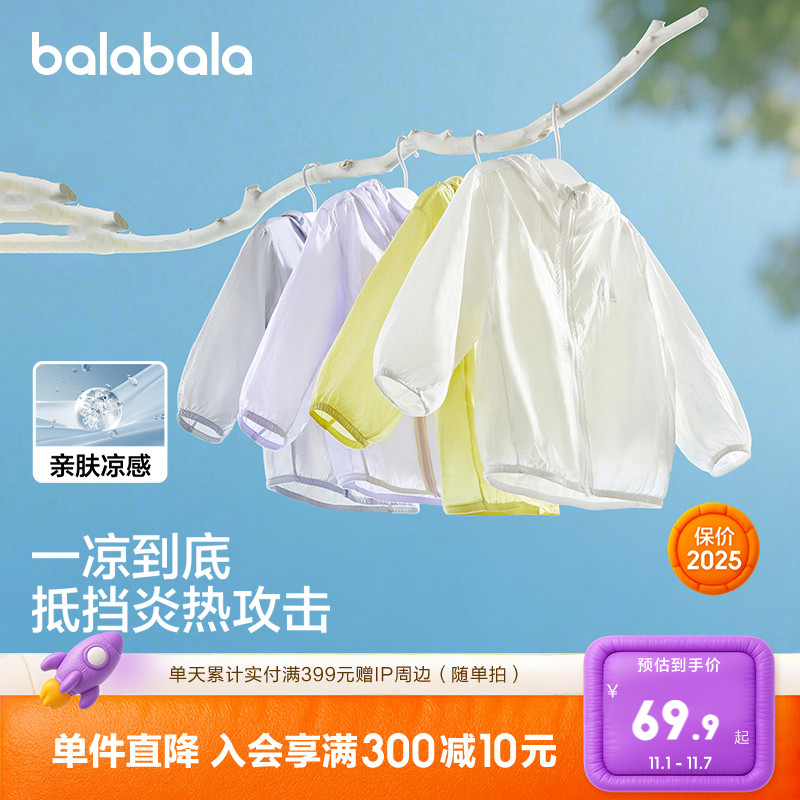 【商场同款】巴拉巴拉童装儿童防晒衣男童外套女童2025夏装皮肤衣