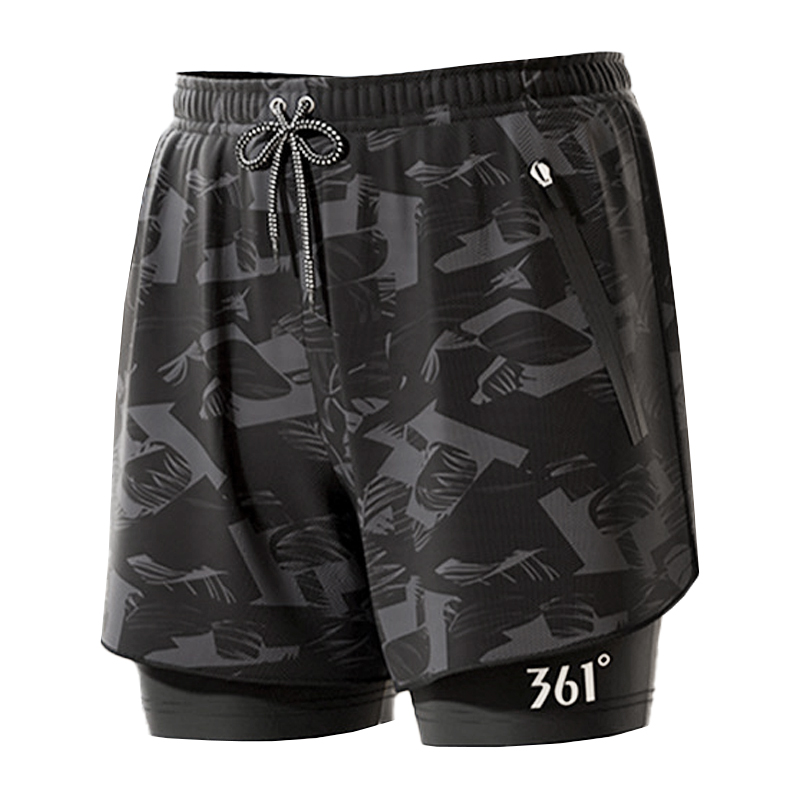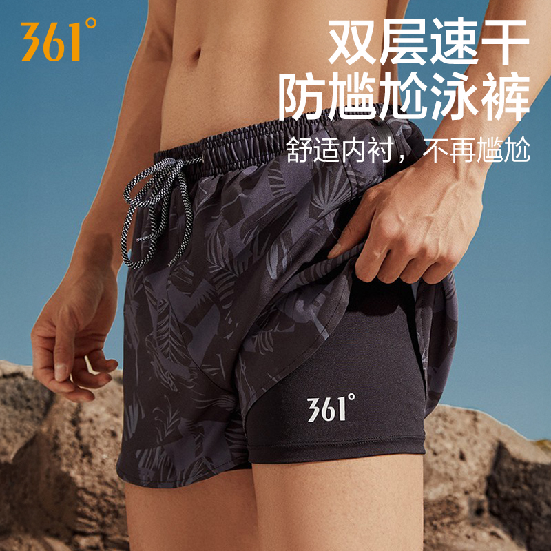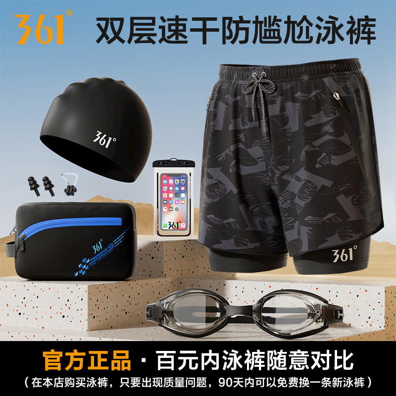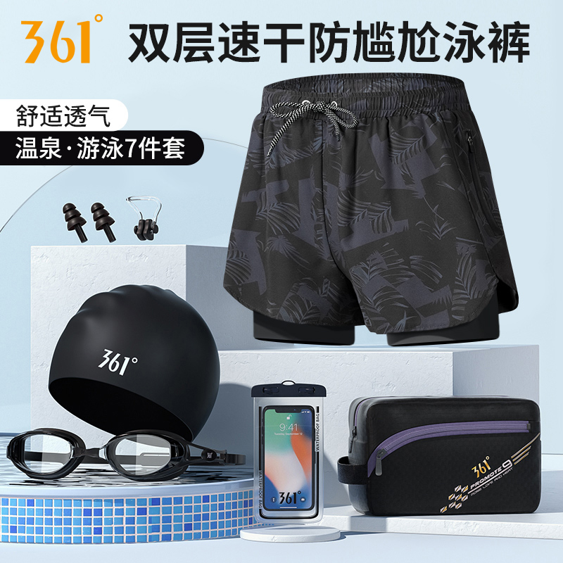 361游泳裤男士假两件泳裤泳帽泳镜防尴尬宽松双层沙滩裤大码装备,浙江 杭州