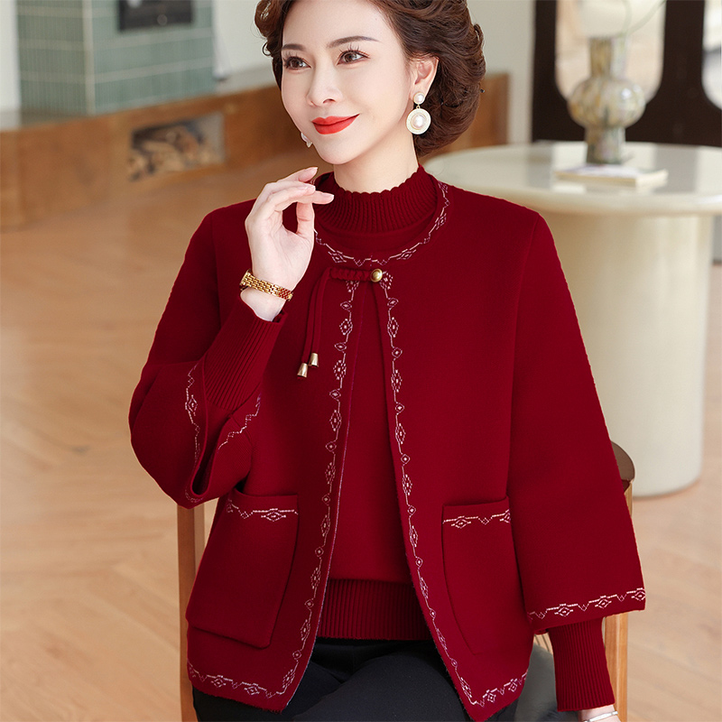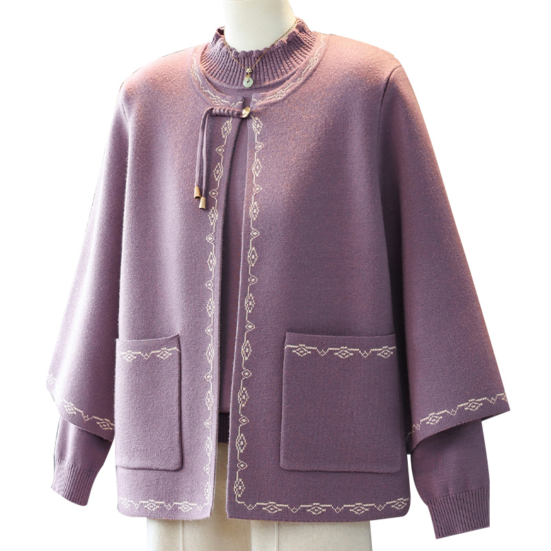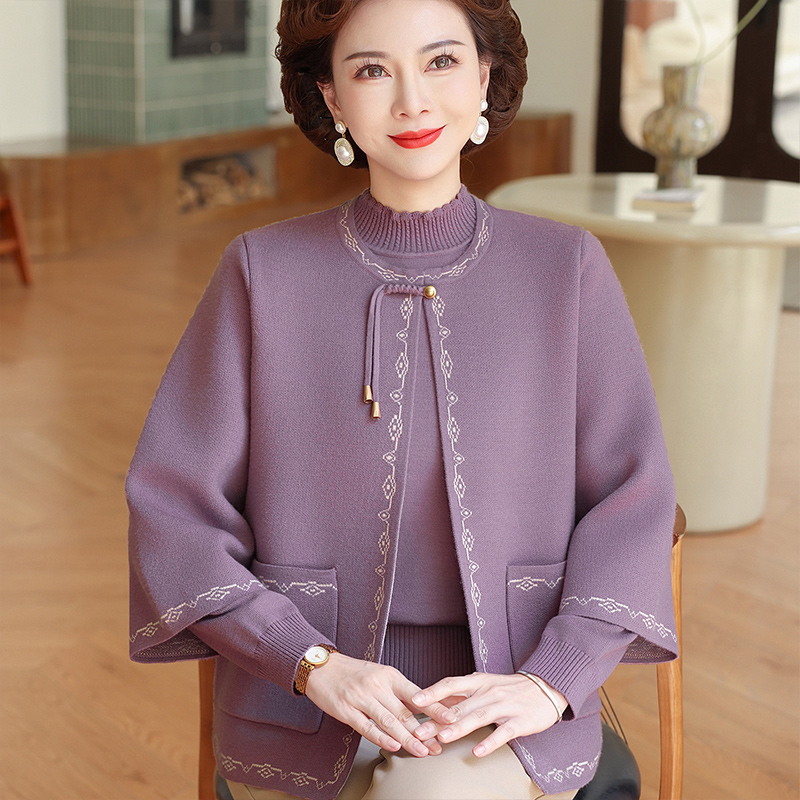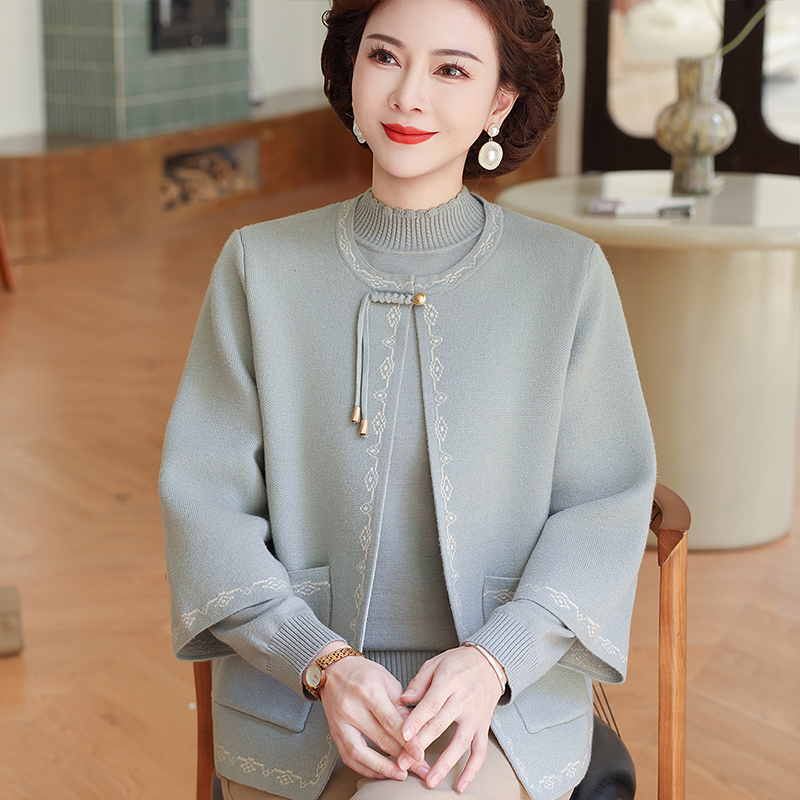 妈妈秋装针织衫两件套洋气上衣2025新款中老年女装新中式开衫毛衣,浙江 杭州
