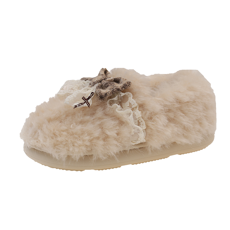 厚底棉拖鞋女款冬季室内居家保暖防滑可爱蝴蝶结包跟毛绒月子棉鞋,浙江 宁波