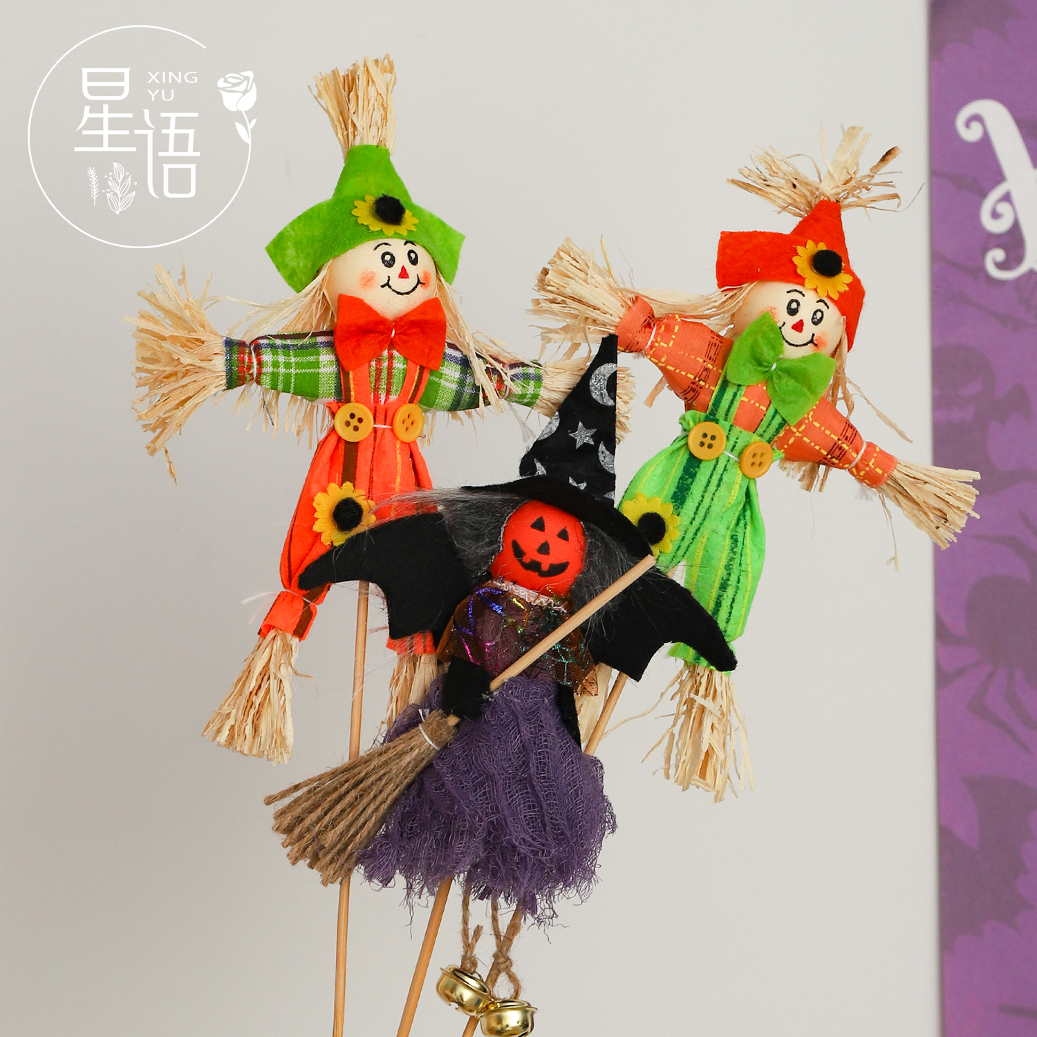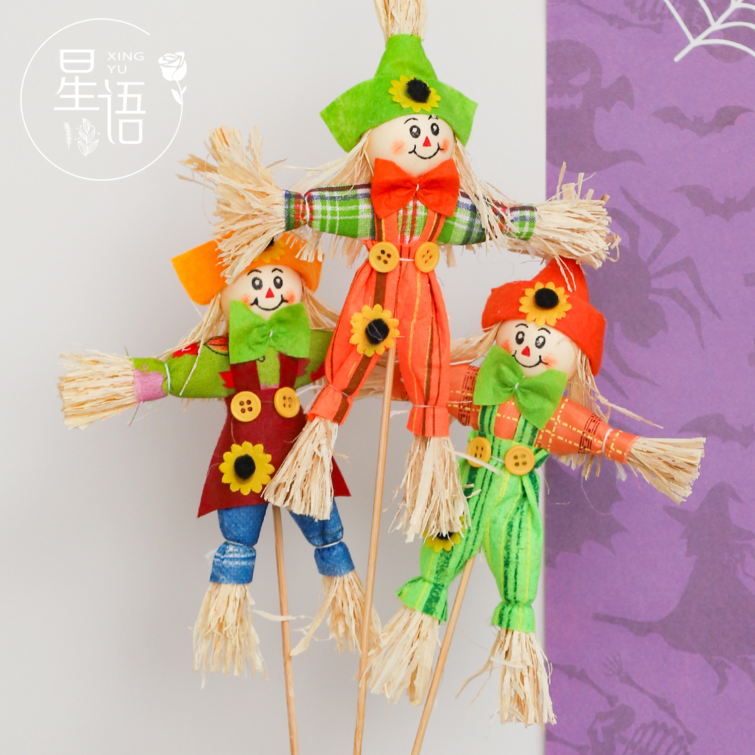 星语 万圣节稻草人鲜花束礼品装饰摆件插件氛围感diy花艺包装材料