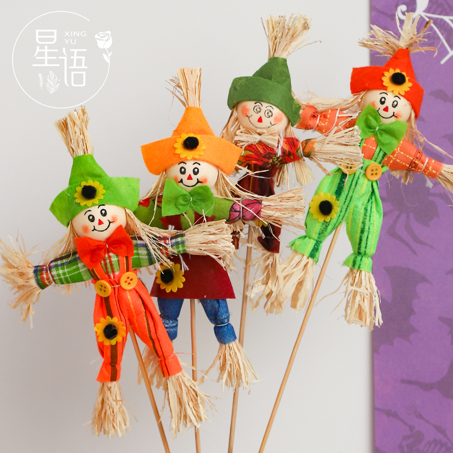 星语 万圣节稻草人鲜花束礼品装饰摆件插件氛围感diy花艺包装材料,浙江 金华