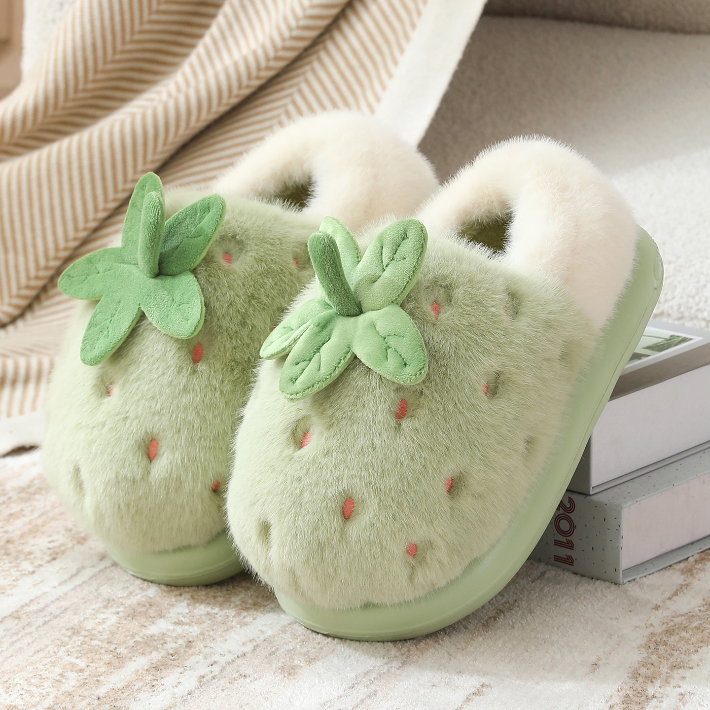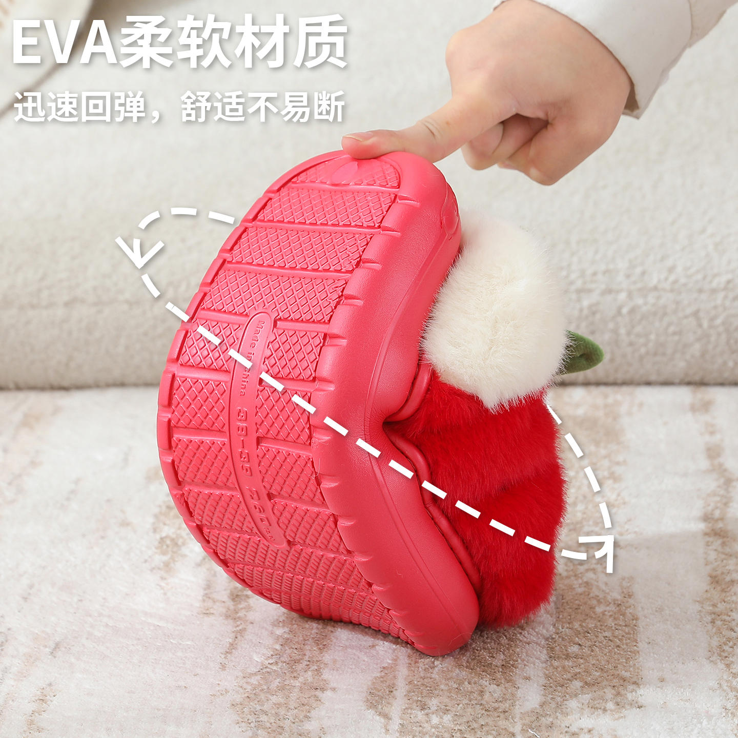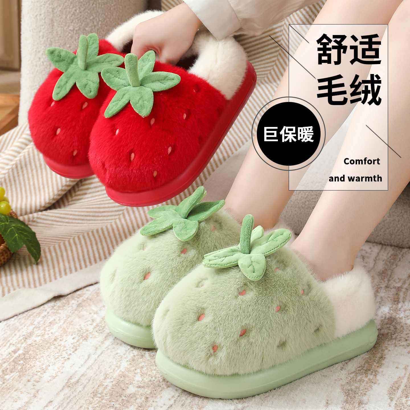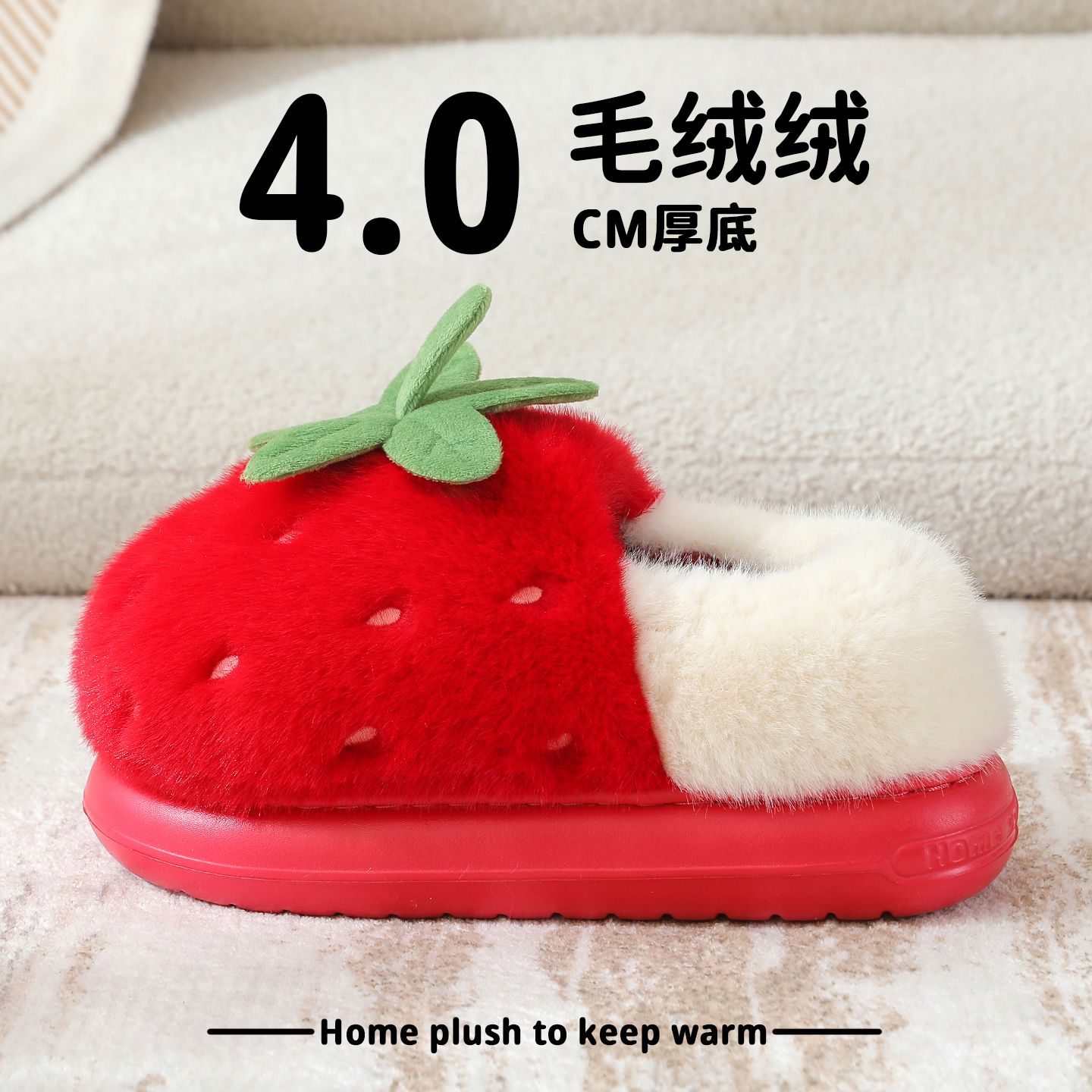 厚底包跟棉拖鞋女2025新款毛绒草莓居家月子拖鞋冬季保暖棉鞋防滑,浙江 杭州