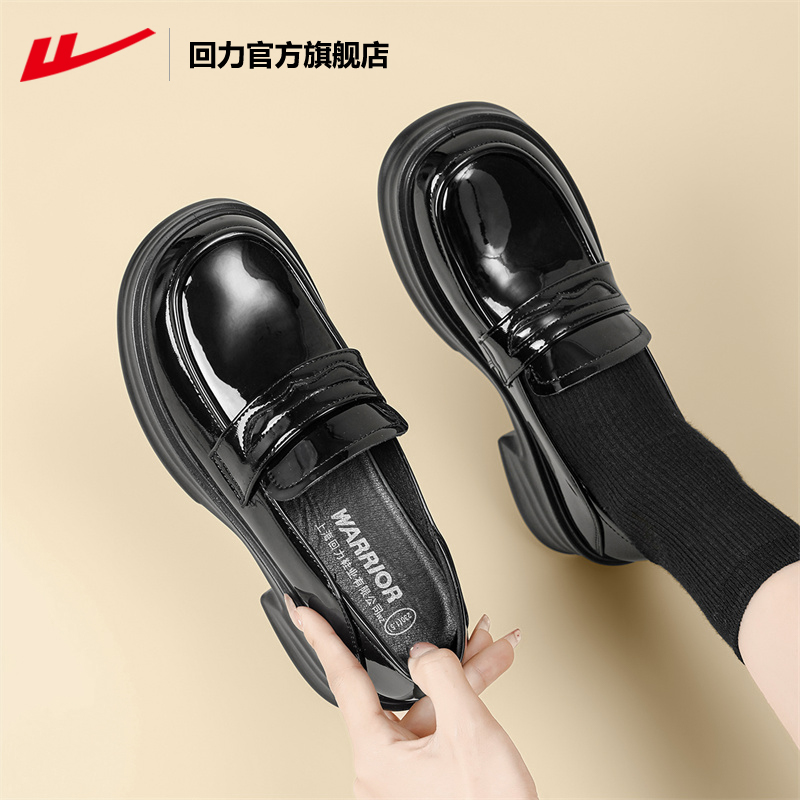 回力官方旗舰店乐福女2025秋季新款黑色厚底小皮鞋软底工作单鞋女,江西 南昌
