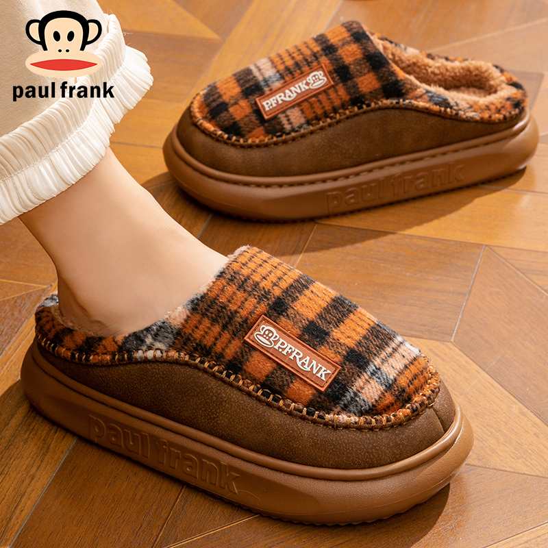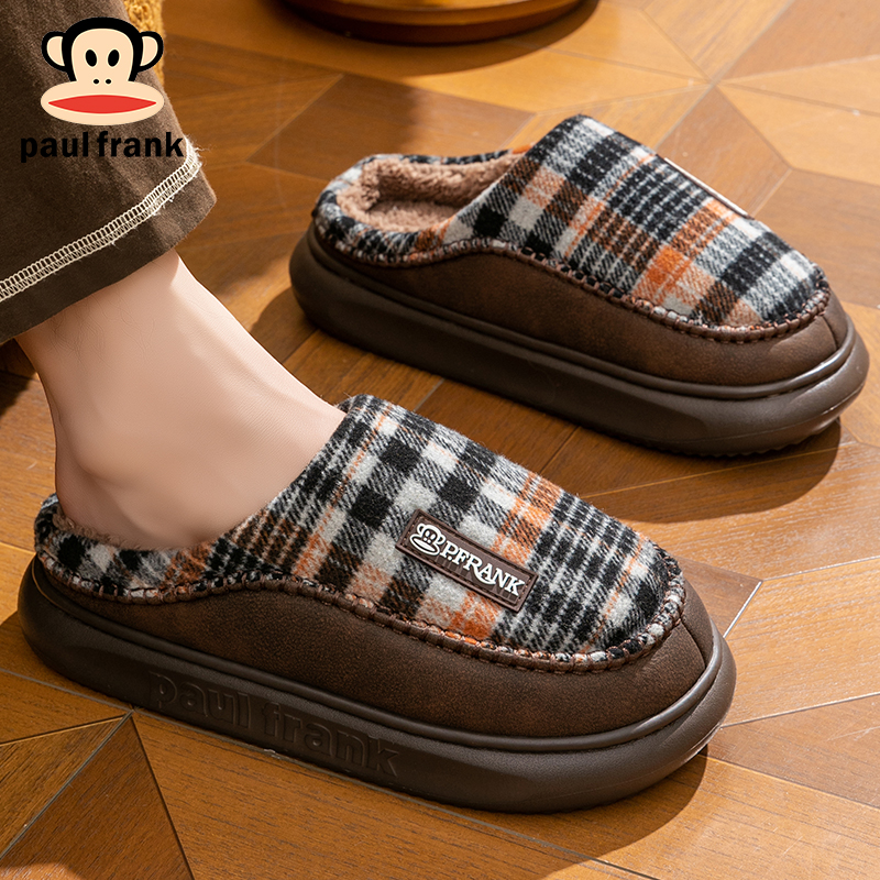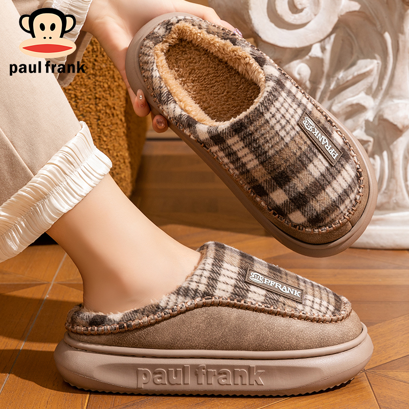 大嘴猴棉拖鞋冬居家男士棉鞋女情侣厚底防滑耐磨格子平底毛绒保暖,上海