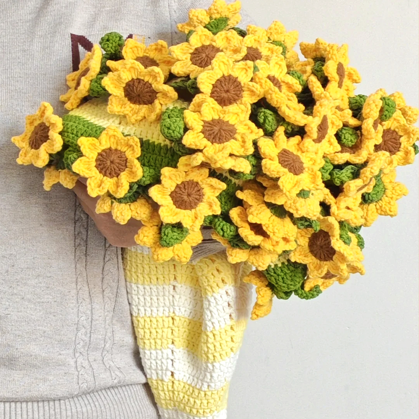 丝绒向日葵花束毯子一举夺魁手工编织毛线diy材料包玫瑰毛毯礼物,浙江 金华