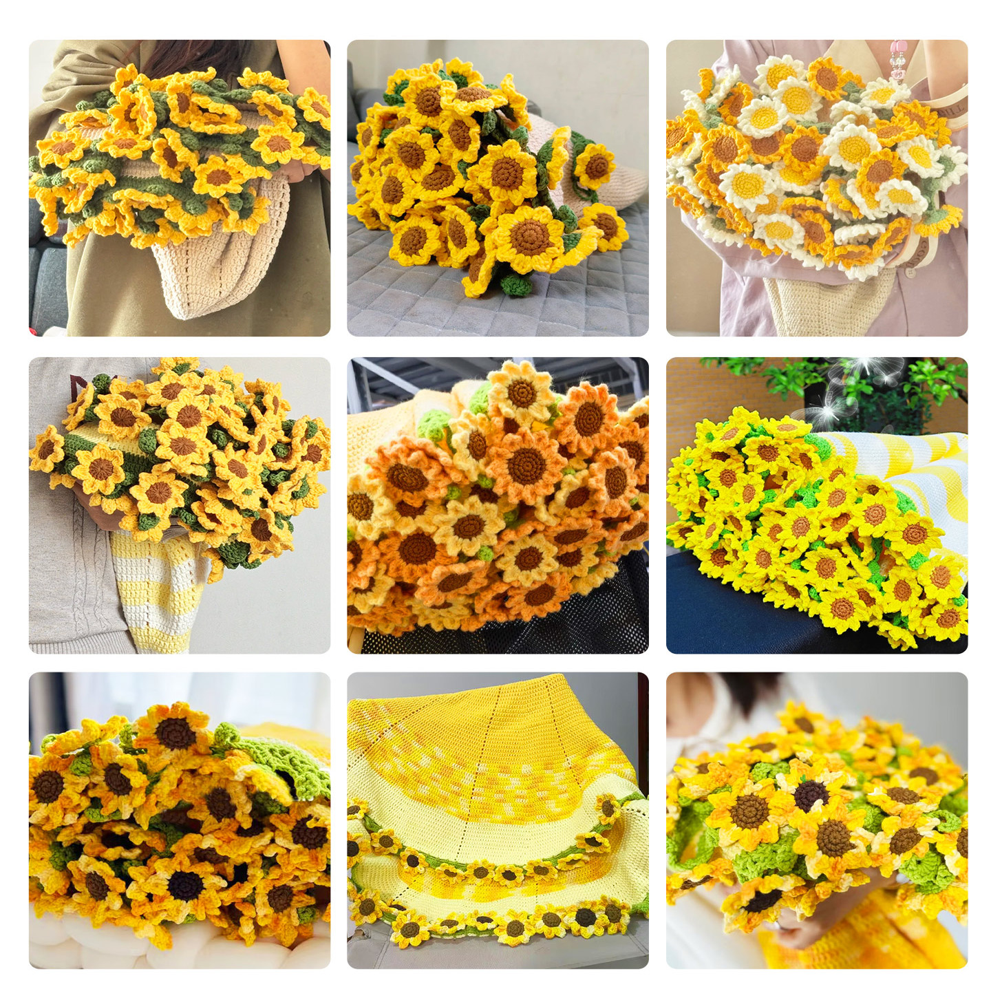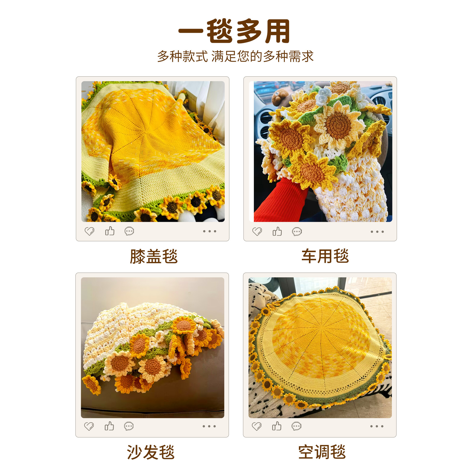 丝绒向日葵花束毯子一举夺魁手工编织毛线diy材料包玫瑰毛毯礼物