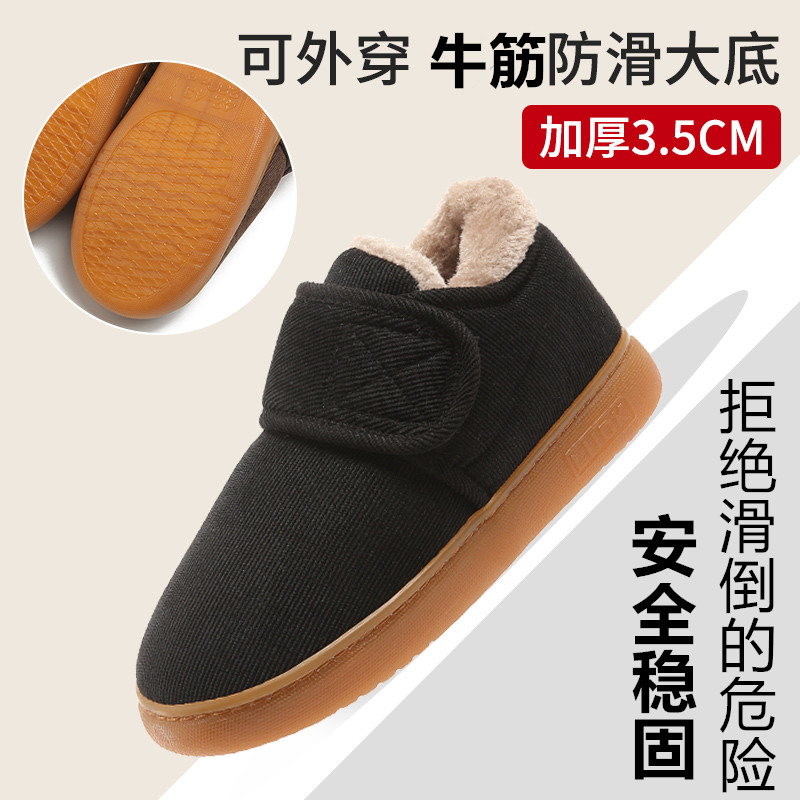 中老年加厚保暖妈妈鞋厚底外穿男老人居家包跟棉拖鞋冬防滑棉鞋女