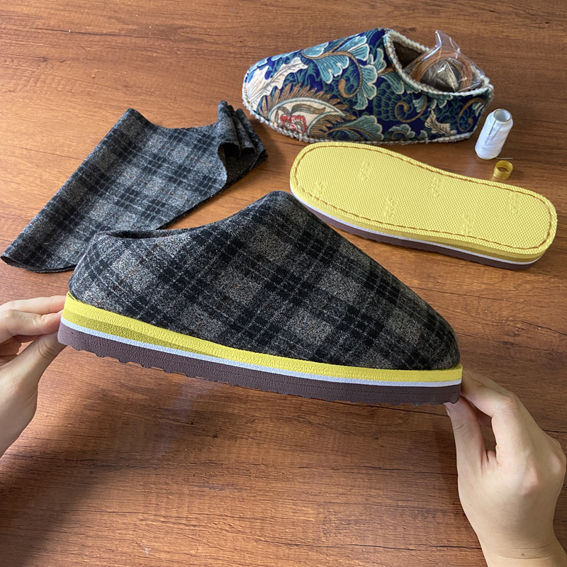 孺子牛手工棉鞋拖鞋半成品DIY材料包全套呢绒格子纯手工拖鞋整套,湖南 邵阳