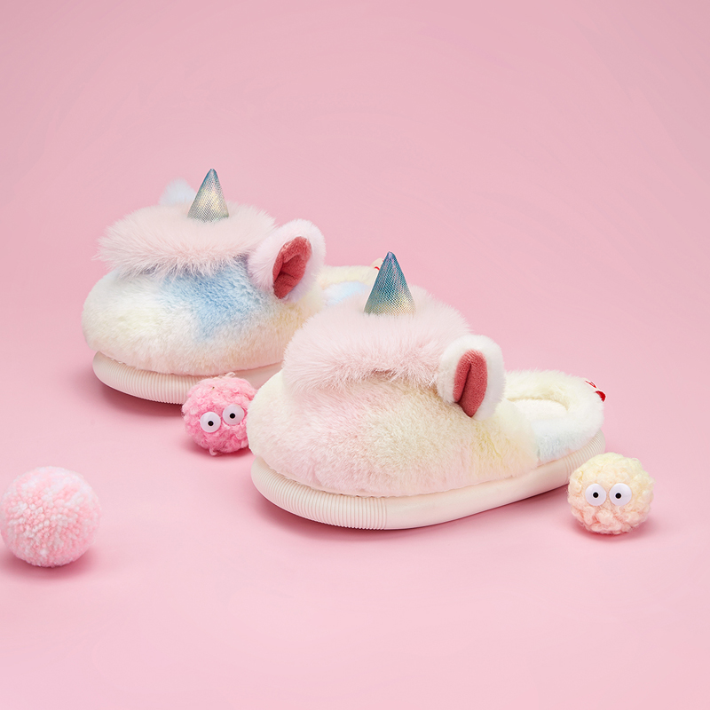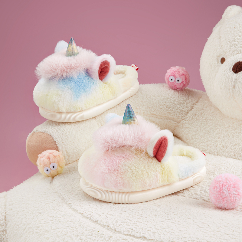 棉拖鞋儿童2024秋冬女童毛毛鞋平跟包跟绒面居家室内女孩宝宝棉鞋,上海
