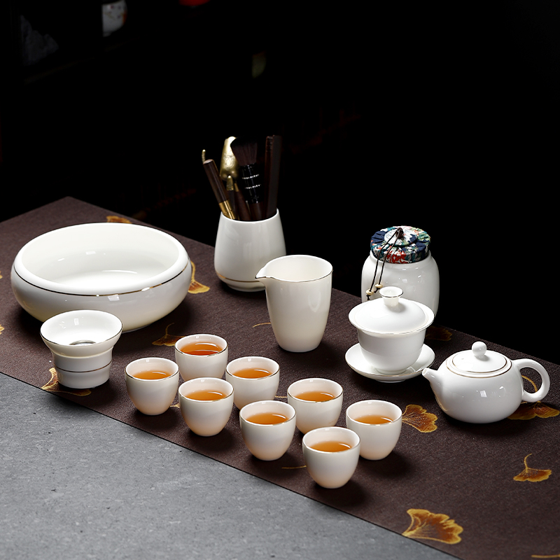 羊脂玉白瓷茶具套装家用陶瓷功夫茶杯喝茶盖碗现代高档轻奢泡茶器