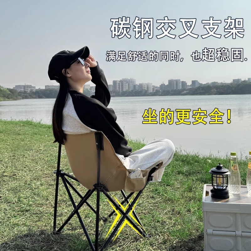 户外露营桌椅便携超轻野餐野营装备钓鱼烧烤摆摊夜市懒人椅月亮椅